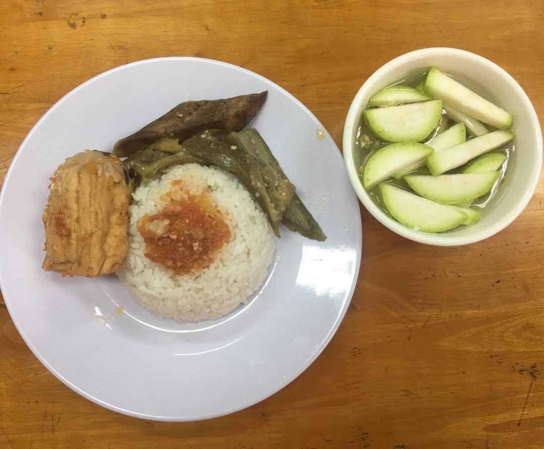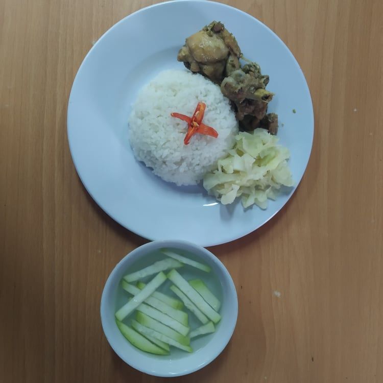 +) Thứ tư: 100 suất thu được 200.000 vnđ (Cơm gà kho xả, canh cải và mướp xào) .