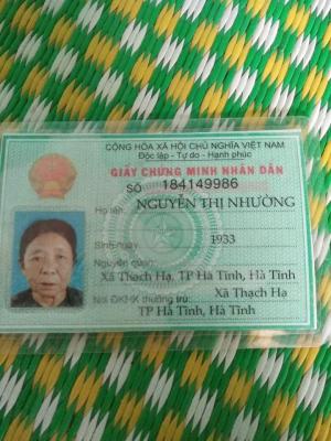 - [05/11/2018]:NGUYỄN THỊ NHƯỜNG (SN 1933) Địa chỉ: Xóm thượng- xã Thạch hạ- Thành phố Hà tĩnh Neo đơn, không gia đình, người thân, thường xuyên bệnh tật, hoàn cảnh khó khăn[VânKiêuSa]