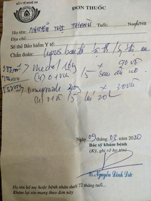 Theo những gì Trung kien xác minh được biết là bà mỗi tháng đều phải tới trung tâm huyết học để chuyền tiểu cầu vào máu và uống thuốc điều trị theo đơn thuốc của bác sĩ nhưng thuốc bà phải mua ở ngoài vì nó không nằm trong thuốc của bảo hiểm. Còn giấy tờ điều trị của bà hiện tại ở Trung Tâm Huyết Học - Truyền Máu Tỉnh Nghệ An. Sau mỗi lần tới chuyền tiểu cầu Trung Tâm chỉ cho hóa đơn như Trung Kien đã cập nhật ở trên thôi ạ.