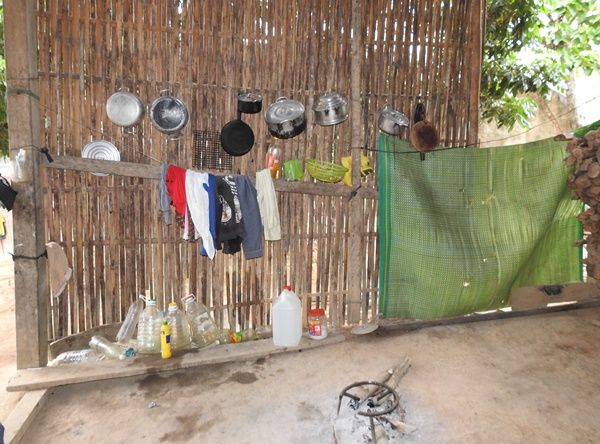 Căn nhà hiện tại: Đủ rộng để mẹ con tá túc. Tuy nhiên, đó ko còn là một ngôi nhà đúng nghĩa (dù láng giềng xung quanh đều là những ngôi nhà ấm cúng so với một khu dân cư tập trung). Mái tôn đã rỉ sét, mục nát, nhìn lên thấy lỗ chỗ như thấy sao trời với những tấm bạt nhựa che mưa đã mục ruỗng, tơi tả. Nhà trống rỗng do ko có bất kỳ cửa ra vào, cửa sổ nào ( đứng trước nhà có thể nhìn được cây cối phía sau nhà). 2 bên vách được che bằng những tấm phên tre trống trải, ngập tràn gió lùa. Nói chung, khi trời mưa, gió thì ko ngủ được trong nhà. Bếp là 1 chiếc kiềng 3 chân để ngay giữa nhà, than hồng đang ngún khói. Bên cạnh, trên vách treo 1 số soong, nồi, và chai lọ nhưng đều trống rỗng, ko thấy chút gì gọi là mắm muối, thậm chí, chai nước mắm mà căn bếp nào cũng có thì ở đây hoàn toàn vắng bóng. Mở nắp cái xô đựng gạo thì thấy toàn…vỏ bao gạo đã dùng. Thiết bị điện-điện tử duy nhất trong nhà thấy được là 1 bóng đèn compact 11W treo tòn ten trên đầu. Vật dụng giá trị nhất là chiếc giường gỗ để giữa nhà với nước vẹc ni còn sáng. Hết.