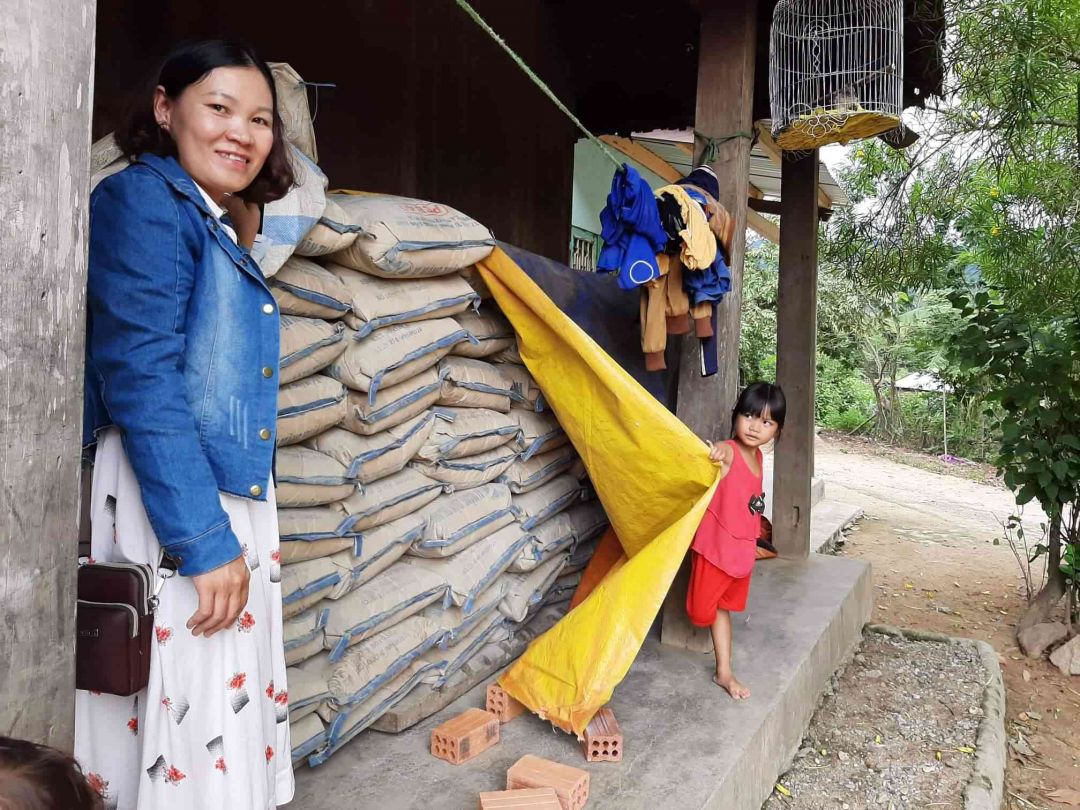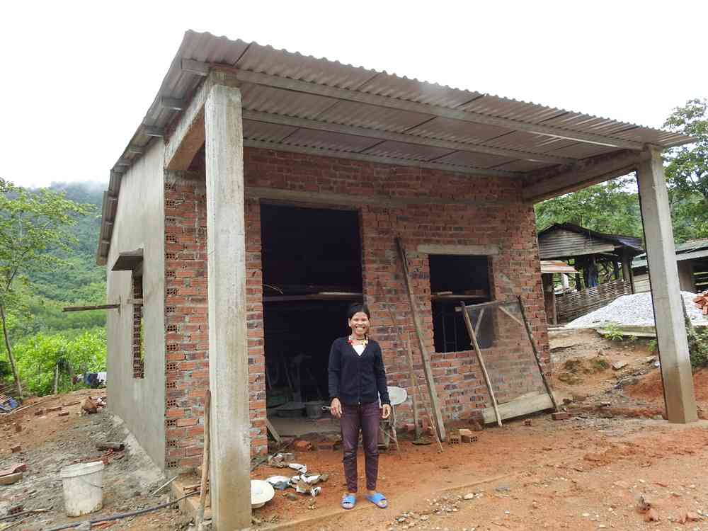 Ảnh: Hình ảnh ngôi nhà xây dựng đã gần xong. Chị Đem ngập tràn hạnh phúc bên ngôi nhà mới !