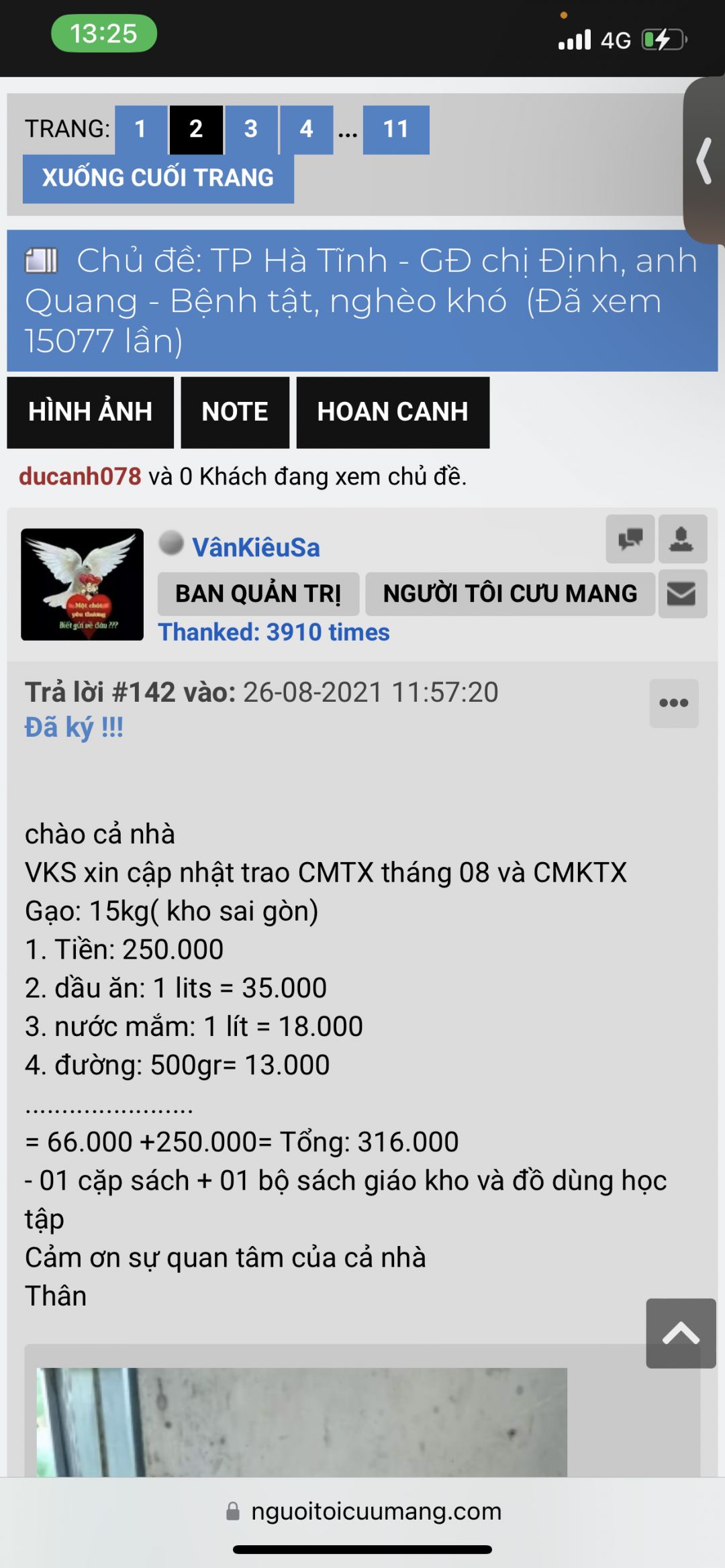 2) Hình ảnh chụp với các hoàn cảnh phải thấy rõ số tiền, số nhu yếu phẩm được trao.