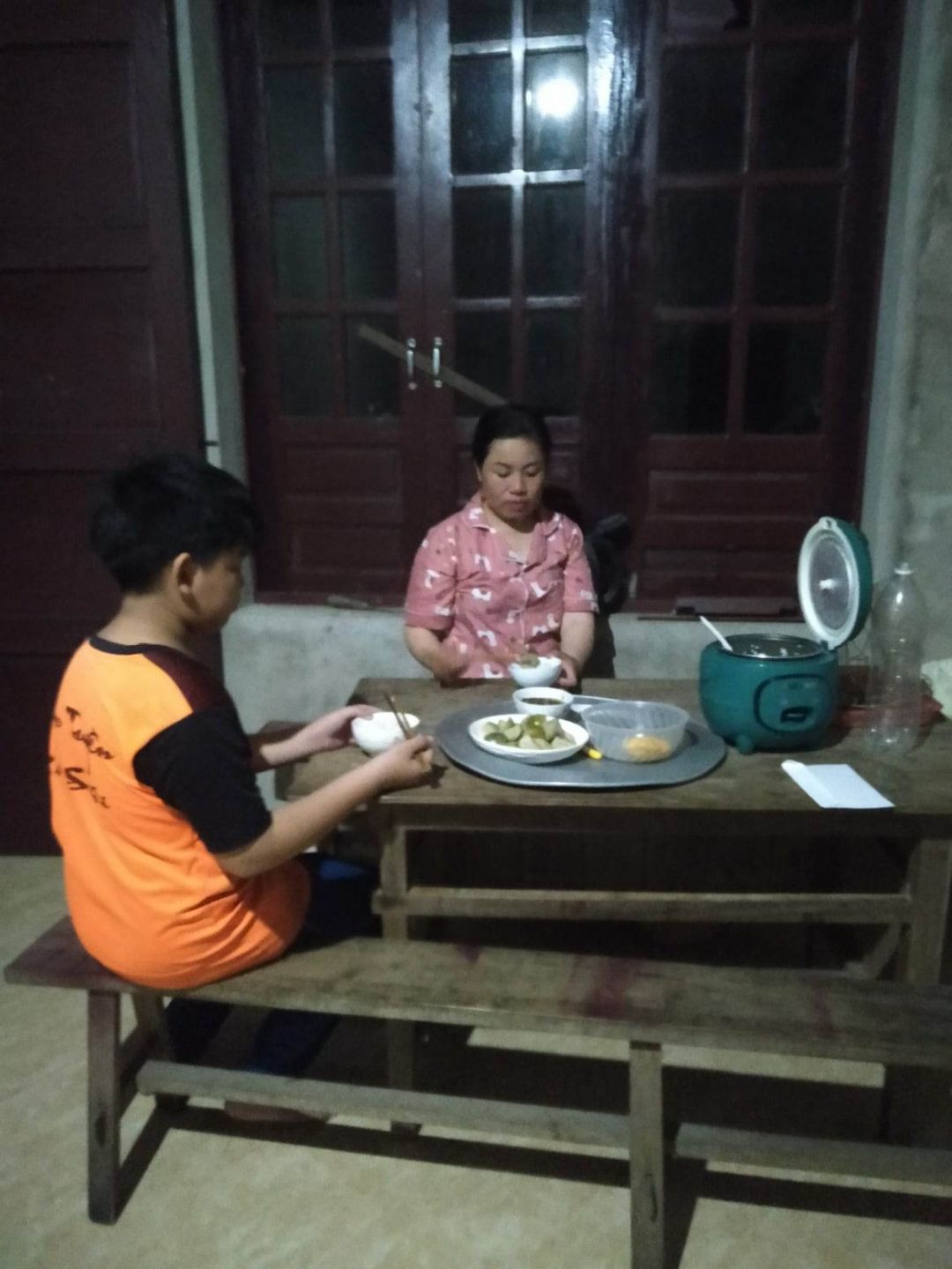 Chiều tối nay Thùy Linh Võ và Nguyễn Quý đã tới nhà chị Vinh để trao tiền cưu mang không thường xuyên cho gđ chị ( vì mẹ chị Vinh đã xuất viện, nên nhóm đến bv không gặp được bà). Nhóm đến bất ngờ nên cũng đã thấy bữa ăn của mẹ con chị Vinh rất đơn sơ , sau một ngày chạy tiếp thị vất vả dưới trời nắng nóng. Sau đây là một số hình ảnh khi tới nhà chị