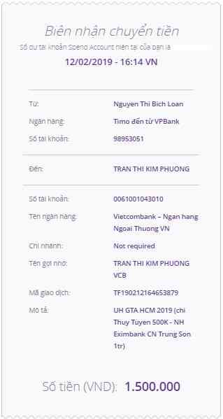 Bạn Tuyền ủng hộ chương trình 500,000đ và đã chuyển tiền về thủ quỹ Thocon rồi.