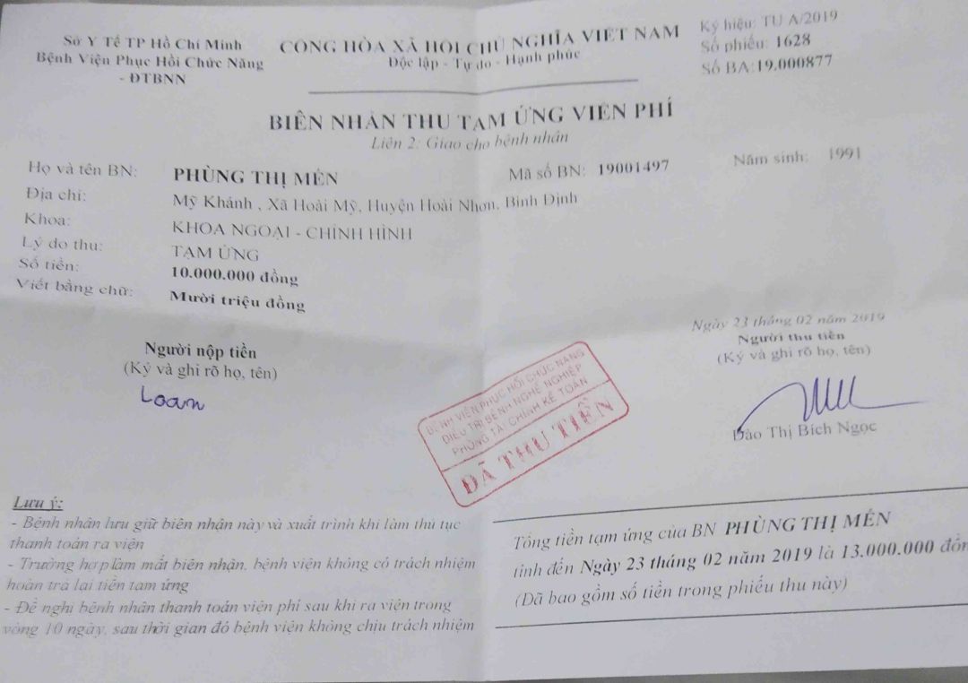 Hôm nay Mai Tâm có đến bệnh viện phục hồi chức năng Quận 8 khám bệnh và có gặp bác sĩ điều trị vết loét Em Mến
