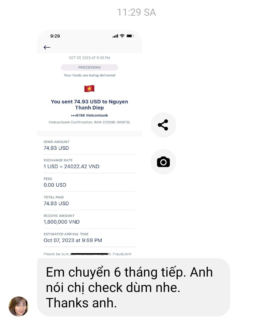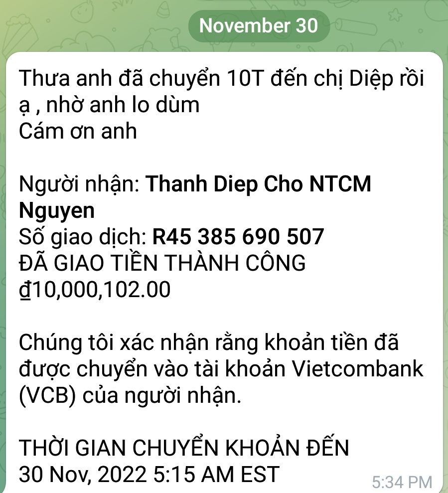 Nhờ Lathuvang chuyển khoản tiền trên về tài khoản 1501 MB Bank của NTCM dùm nhé.