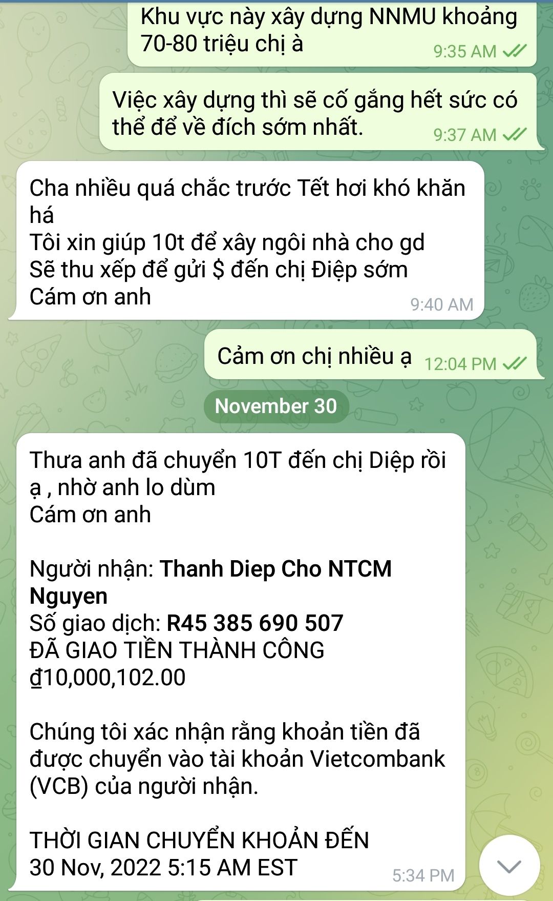 Chị Yến ủng hộ việc xây dựng NNMU số 42 cho các cháu bé tại buôn Ea Uôi, Cư Pui 10,000,102₫ và đã chuyển tiền về quỹ Quán cơm 2000₫-SG.