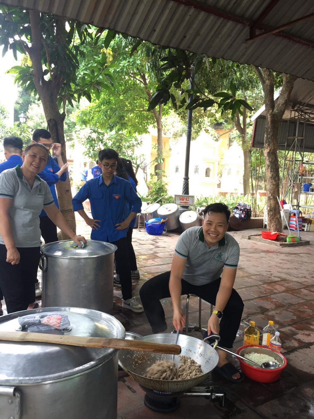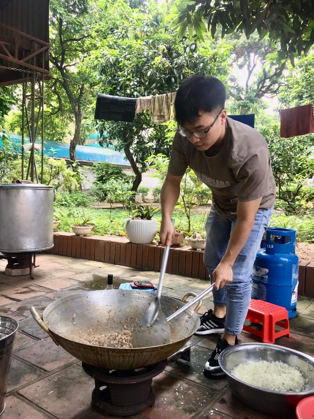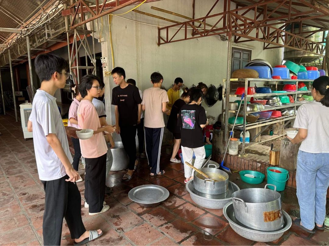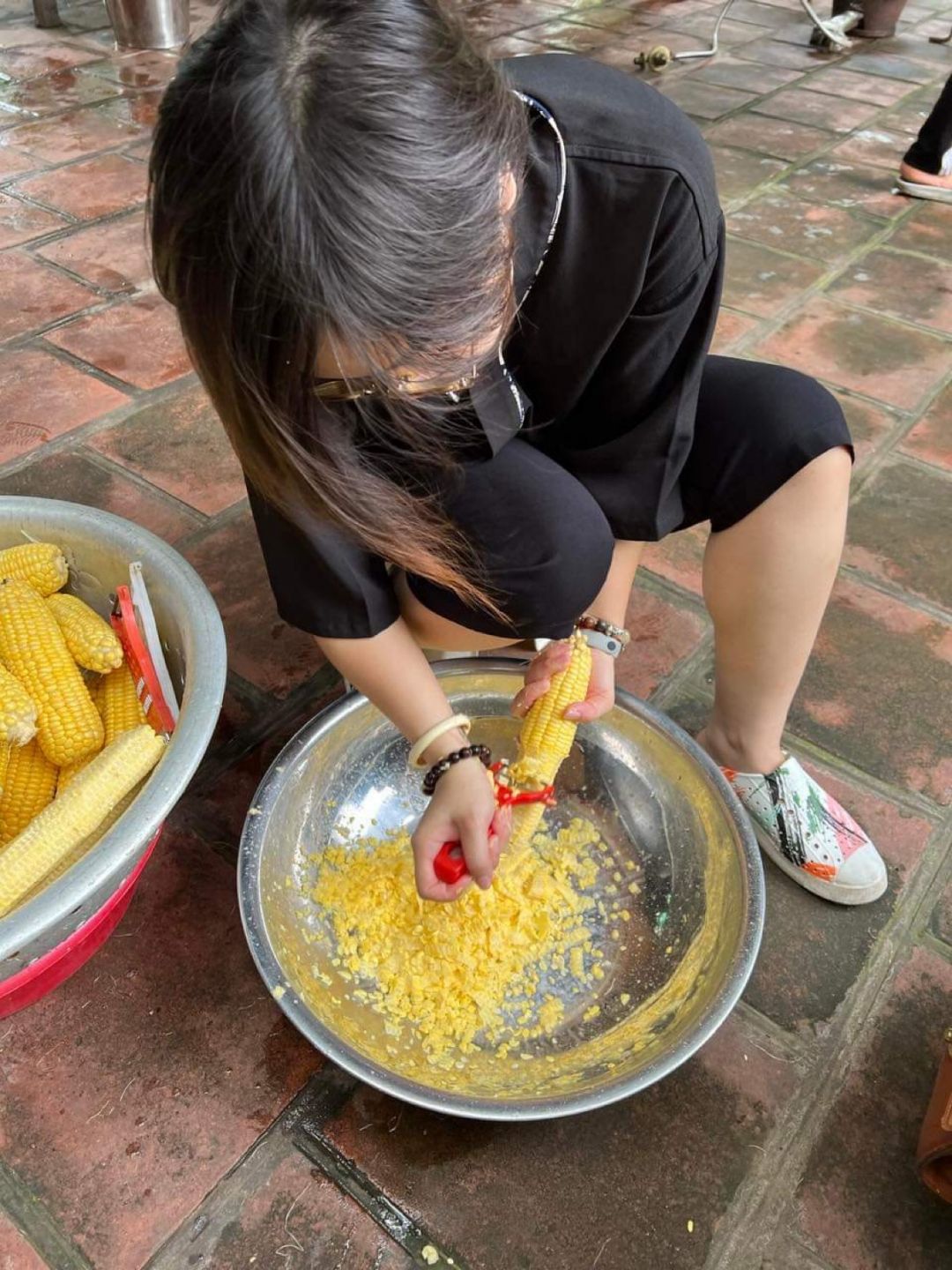 Nắng nóng gần 40 độ nhưng nồi soup vẫn đông đủ các TNV tham gia, soup ngô gà thơm ngon đến giọt cuối cùng.