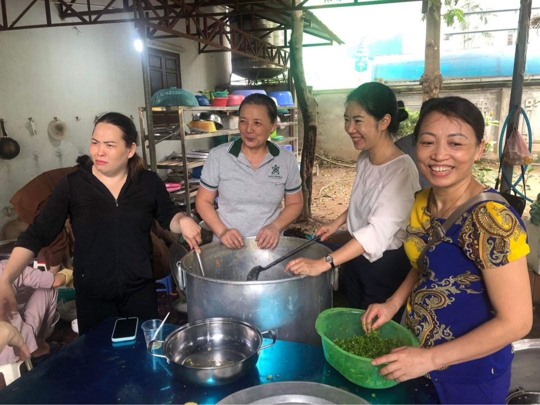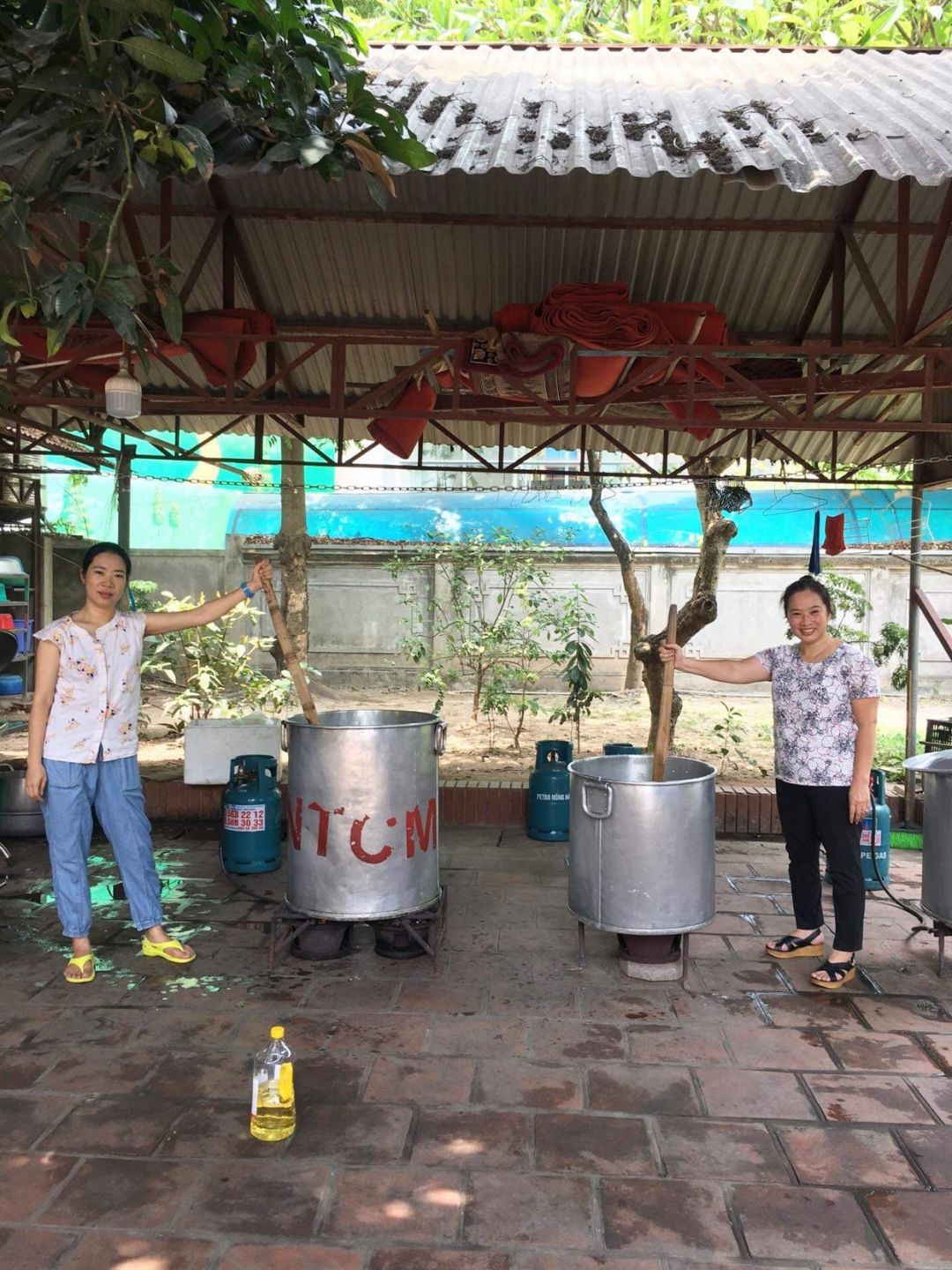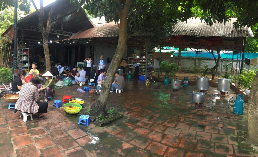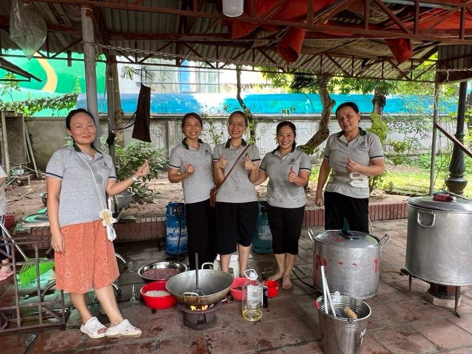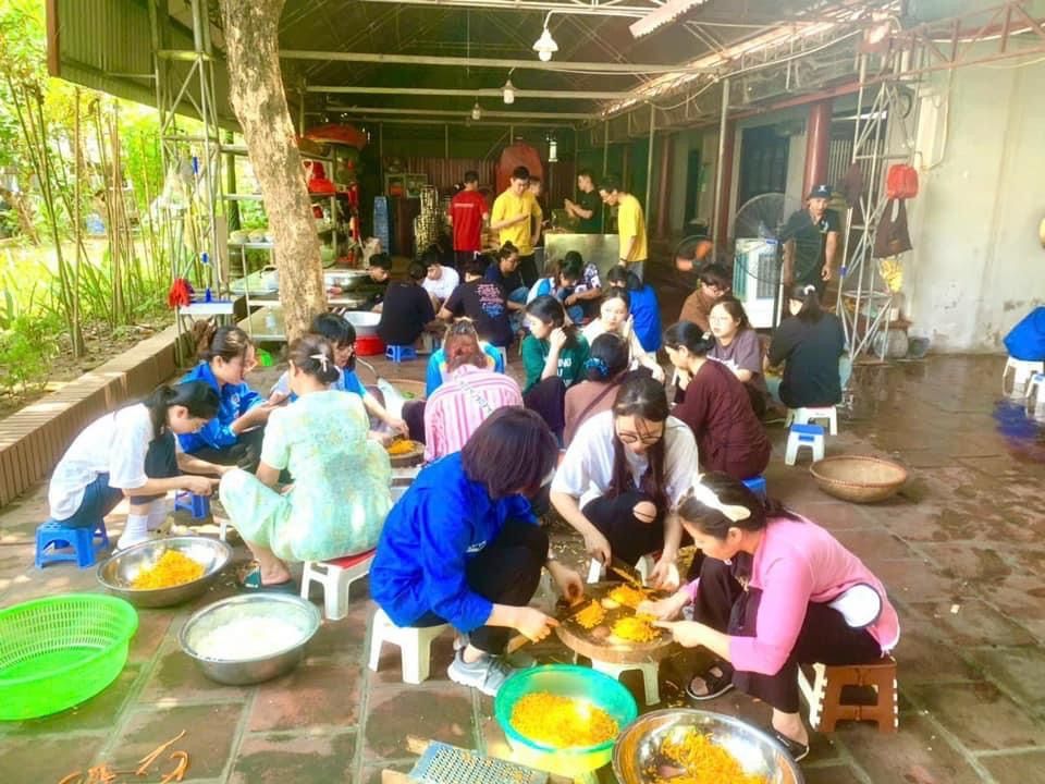 Nắng nóng gần 40 độ nhưng nồi soup vẫn đông đủ các TNV tham gia, soup ngô gà thơm ngon đến giọt cuối cùng.