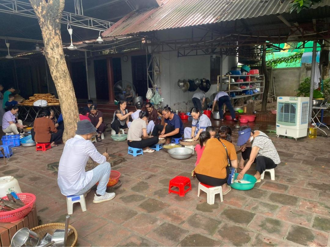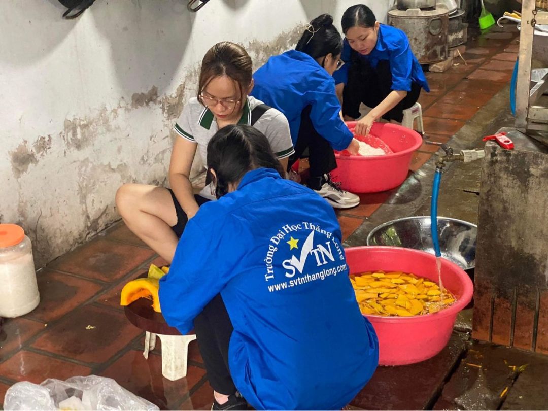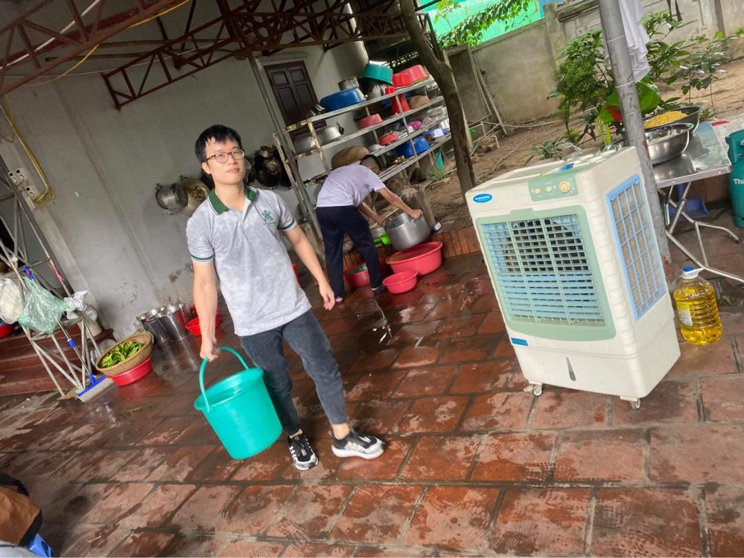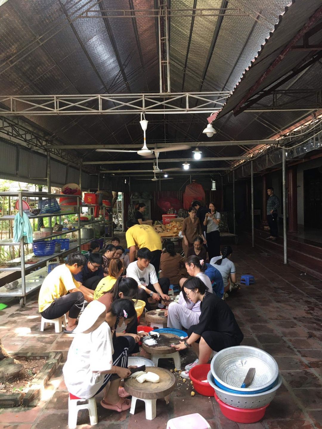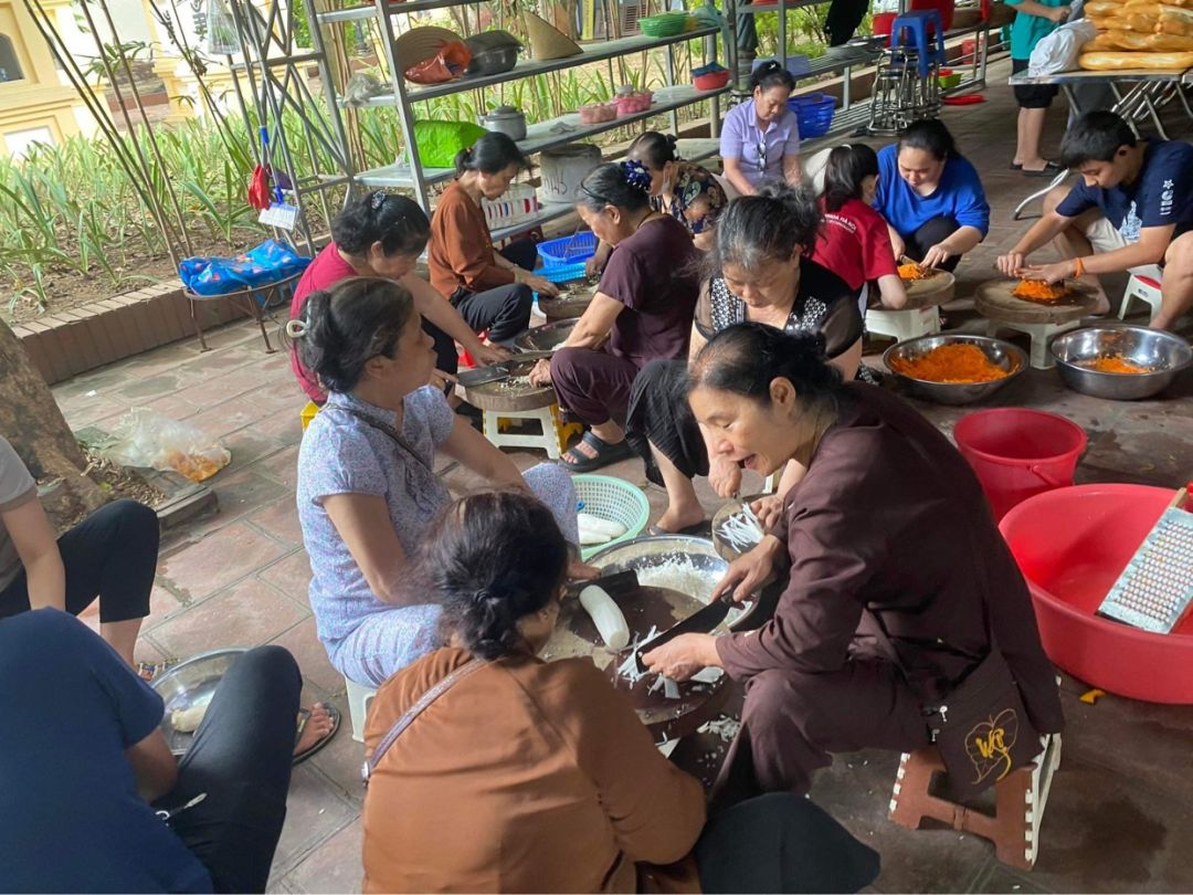 Nắng nóng gần 40 độ nhưng nồi soup vẫn đông đủ các TNV tham gia, soup ngô gà thơm ngon đến giọt cuối cùng.