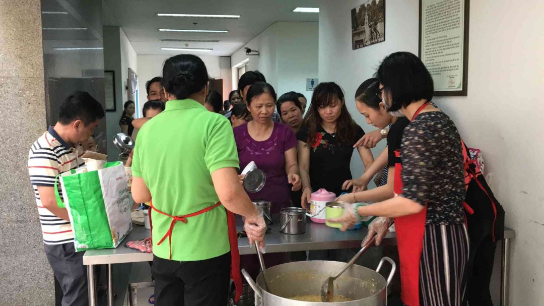 Nhưng với sự nhiệt tình chung tay của mama Sen Trang cùng các anh chị em nồi soup vẫn rực lửa hoàn thành 450 suất ăn cho các bệnh nhân BV huyết học truyền máu TW.