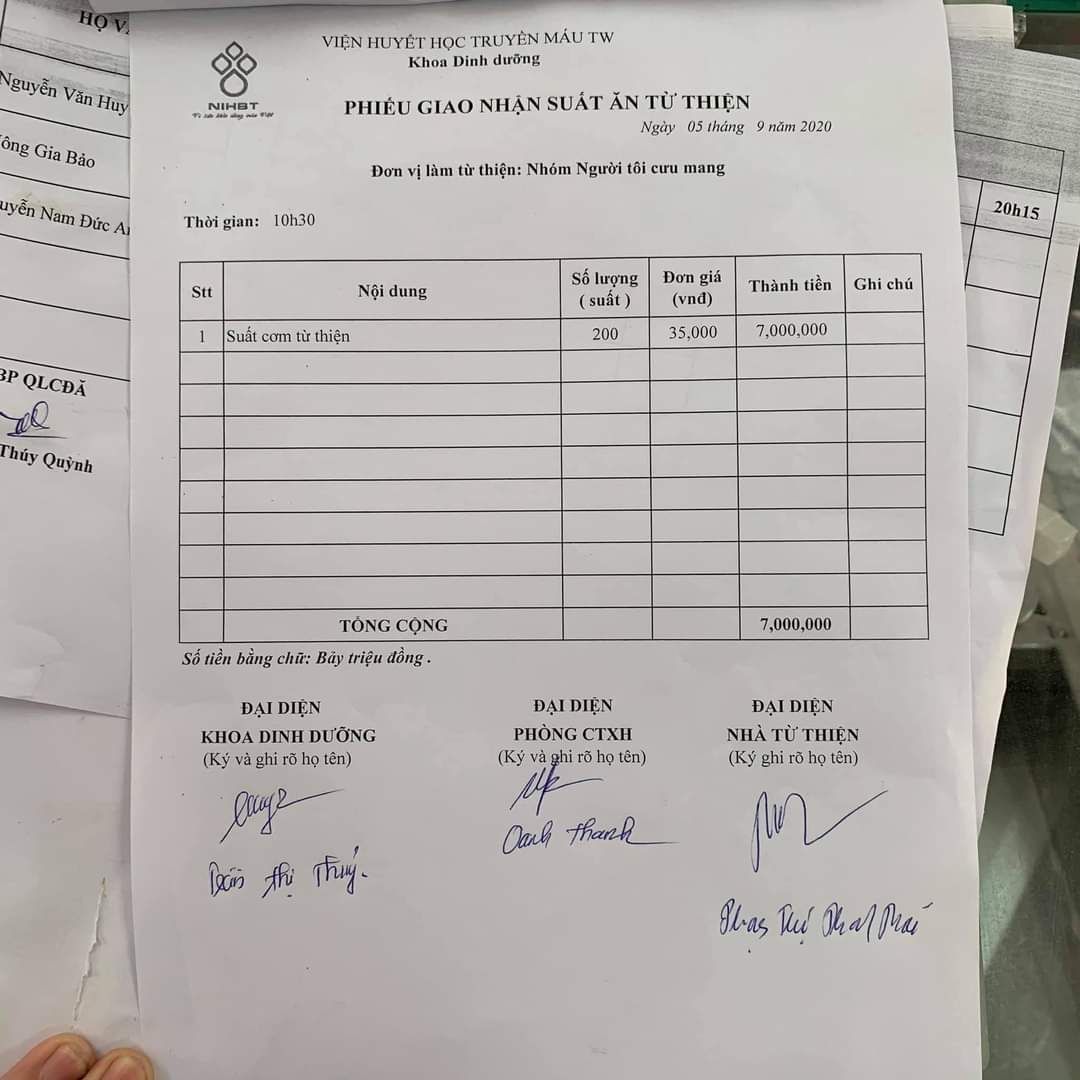 Như đã thông báo từ trước về việc tạm thời dừng tổ chức nấu soup do diễn biến phức tạp và ảnh hưởng của dịch bệnh Covid 19. Nhằm chung tay giảm bớt một phần khó khăn đối với các bệnh nhân trong mùa dịch tại viện huyết học và truyền máu TW . Được sự cho phép của ban quản trị diễn đàn NTCM và ban lãnh đạo bệnh viện. Thứ 7 ngày 22/08/2020, sau khi đã qua kiểm tra sức khỏe, khai báo y tế dưới sự hướng dẫn của phía bệnh viện, Nồi soup Hồng thêm giọt máu - NTCM  đã trao 200 suất cơm tới các bệnh nhân tại viện huyết học và truyền máu TW . Tuy chỉ là 1 bữa cơm nhỏ, nhưng chúng tôi mong rằng nó có thể tiếp thêm động lực  chiến đấu với bệnh tật tới bệnh nhân trong mùa dịch này.