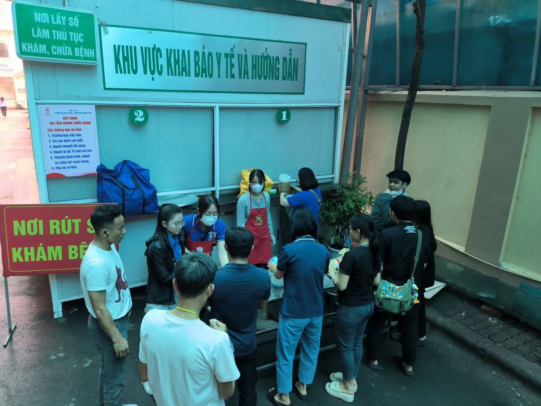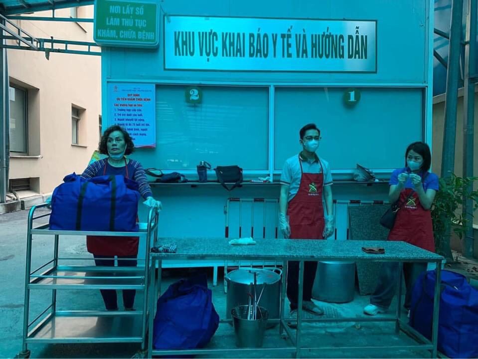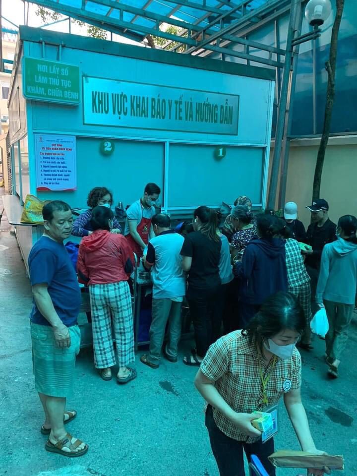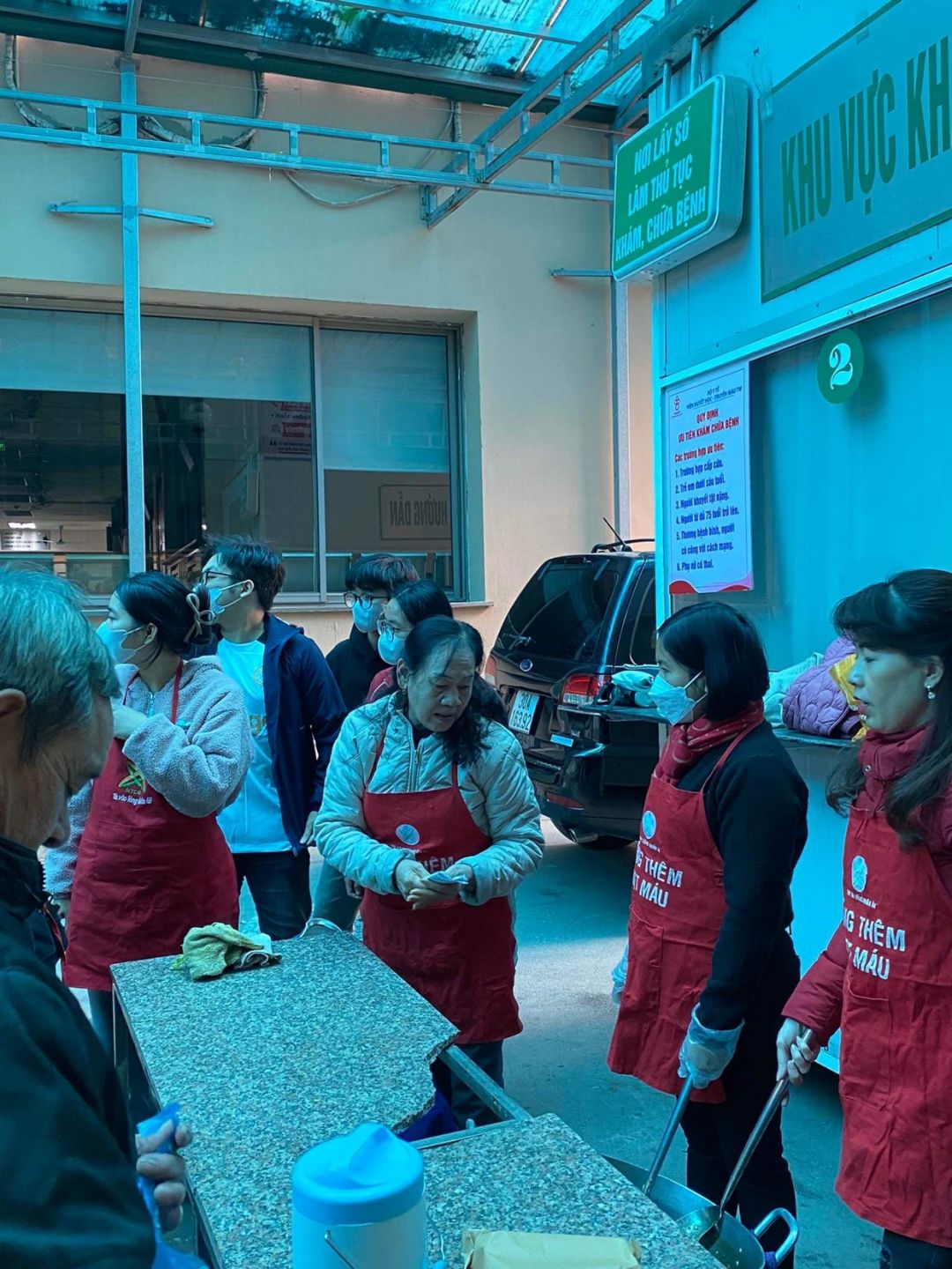 Xe chở soup đến viện sớm, bệnh nhân chờ đông nên phát một lát là hết veo 2 nồi soup ạ.