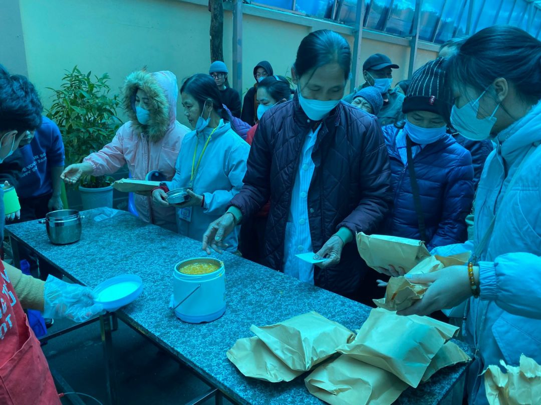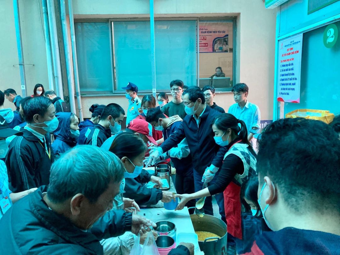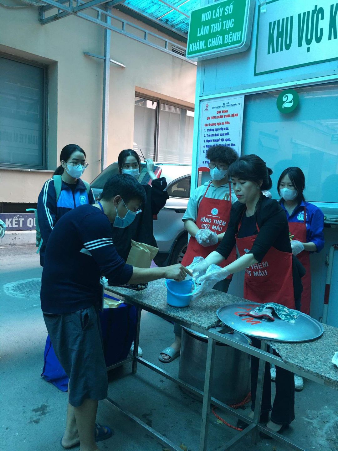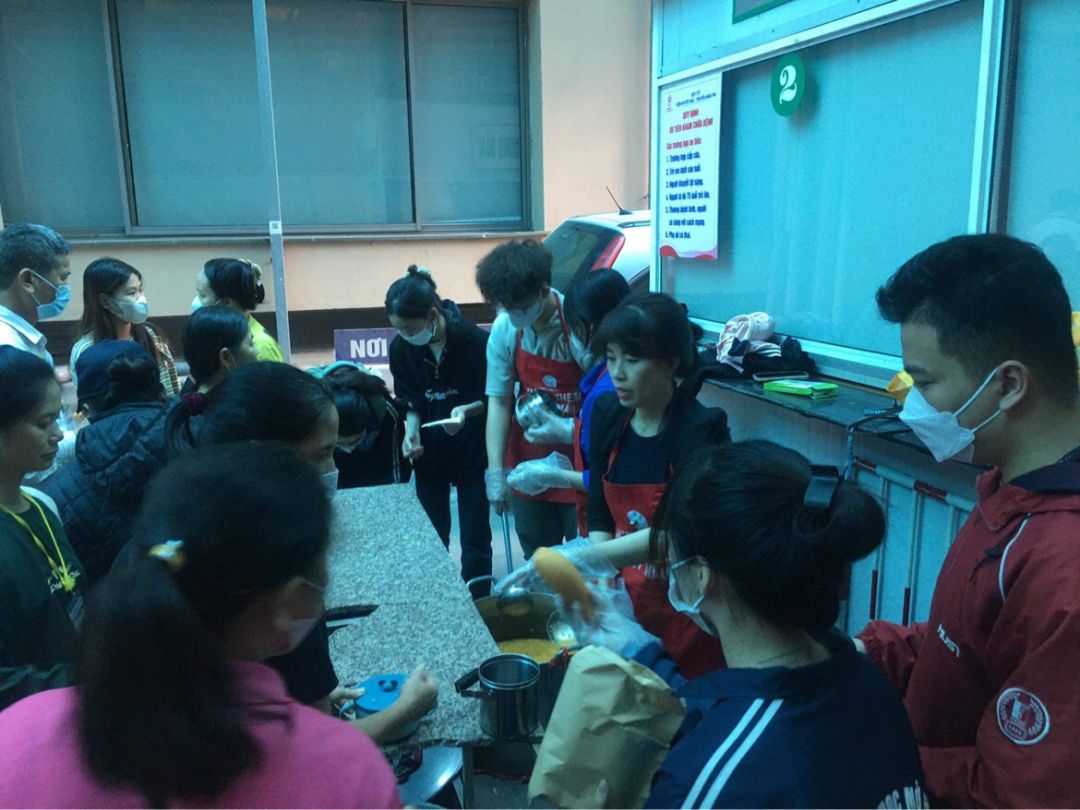 Xe chở soup đến viện sớm, bệnh nhân chờ đông nên phát một lát là hết veo 2 nồi soup ạ.