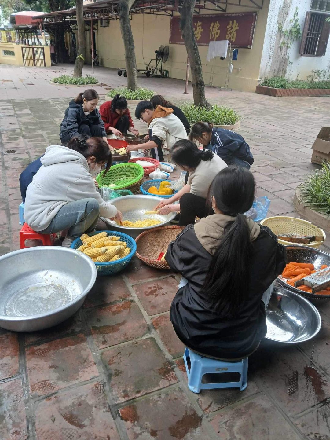 💓 Bà Tý chùa Phụng Lộc uh 1 thùng mì tôm, 80 quả trứng gà cho soup và cho bữa trưa.