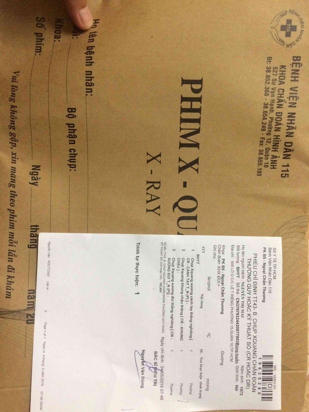 Chị tên Nguyễn Thị Mai (Sinh năm: 1972). Hiện đang ở tại 505 Lô D Chung Cư Lê Thị Riêng P15 Q10, TPHCM. Trước đây chị làm nhiều nghề, trao đổi với Mẹ chị, Chị trước đây phụ bán đồ ắn sáng được một thời gian nhưng do chủ tiệm cụt vốn không tiếp tục bán nữa và Chị đang nghỉ tạm chuẩn bị kiếm việc khác. Còn theo chị, trước đây Chị làm người giúp việc nhà, dọn dẹp nhà cửa, nấu ăn cho những nhà, căn hộ trong chung cư và khu vực lân cận. Một buổi chiều ở nhà, Chị ra lấy quần áo ngoài ban công thì bị say sẩm rồi té từ ban công lầu 5 của nhà mình xuống đất. Chị cho biết, theo lời của những người dân xung quanh, do lúc chị té xuống có tấm bạt căng bên dưới (của một tiệm bán hàng ăn) rồi tấm bạt bị rách, chị mới rớt xuống đất, trong lúc rớt có những cọng dây căng dù gần đó nên phần đầu không bị ảnh hưởng nhiều, nhưng nửa phần thân phải xương bị vỡ, gãy hết ( từ vai, cánh tay, bàn tay, kéo dài xuống đến bàn chân). Lúc đầu đưa vào Bệnh viện 115, Bác sĩ khám và xác định 2 vấn đề là: mổ sắp xếp cố định phần xương bên thân phải bị gãy, vụn, và mổ phẫu thuật đốt sống lưng do va đạp. Nhưng 20 ngày sau khi phẫu thuật cố định phần thân phải thì khi tái khám, phần đốt sống lưng không còn có dấu hiệu bị tổn thương như lần đầu nhận định. Bác sỹ yêu cầu gia đình phải cho Chị tập Vật lý trị liệu với chi phí khoảng 200,000/ 1h tập. gia đình không đủ điều kiện nên chỉ xin cho học 1 buổi để biết bài tập rồi về nhà hướng dẫn. Chị tập được 1 thời gian cũng có dấu hiệu tiến triển.