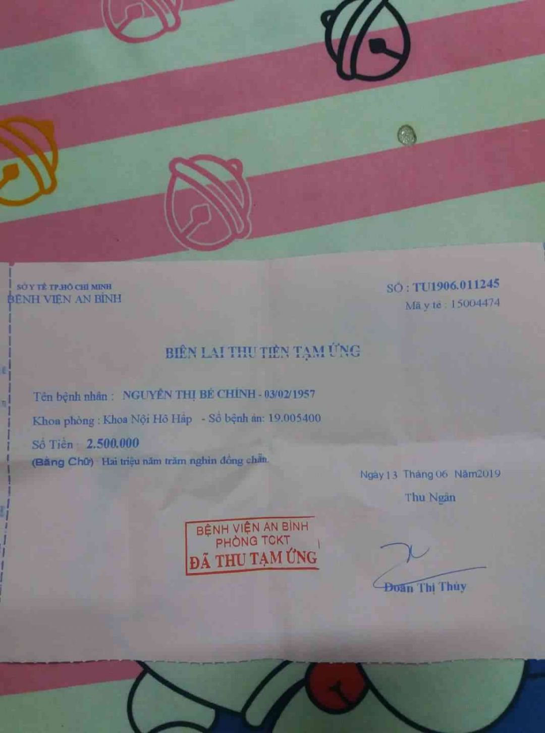 Dạ con xin thưa với cô chú a chị về tình trạng của Mẹ con ạ.Mấy hôm nay chị nhân viên thu phí ở bệnh viện có kêu người nhà đóng số tiền viện phí 2.500 triệu để bệnh viện có thể tiếp tục việc điều trị bệnh tình với thuốc men thêm cho Mẹ mau sớm khỏe lại.Dạ con xin được cảm ơn cô chú a chị, cũng nhờ cô chú a chị đã chung tay giúp đỡ hỗ trợ thêm chi phí chữa trị cho bệnh tình Mẹ con,nên con đã chạy vay thêm để đủ số tiền đóng viện phí cho Mẹ con ạ.