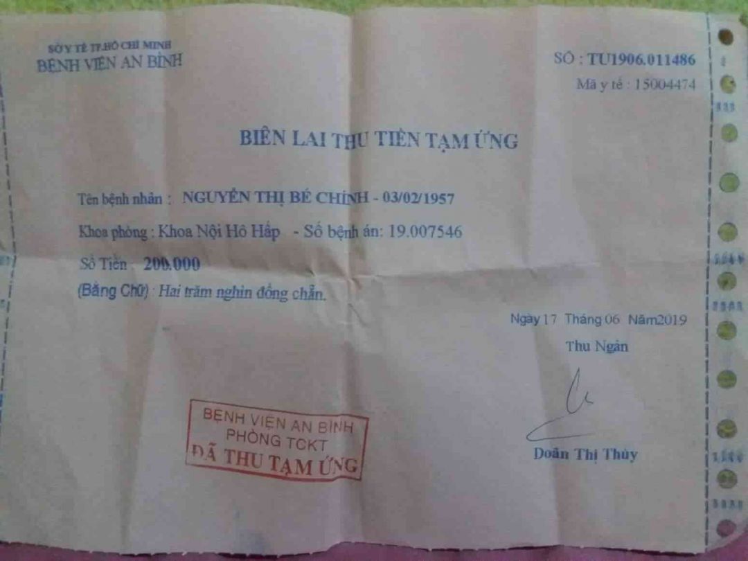 Dạ con kính thưa cô chú a chị, sáng nay nhân viên thu phí ở bệnh viện có đưa cho con phiếu đóng tiền tạm ứng và kêu người nhà ráng tranh thủ đóng để bệnh viện có thể tiếp tục việc điều trị bệnh tình cho Mẹ con hiện giờ để mau sớm được khỏe lại về nhà sum họp với con cháu ạ,con rất mong cô chú a chị xem và chung tay chia sẻ giúp đỡ thêm phần nào chi phí cho Mẹ con.Dạ con xin chân thành cảm ơn cô chú a chị.
