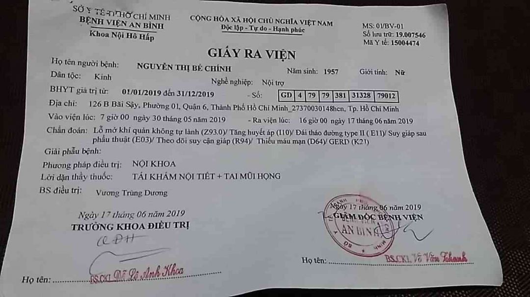 Chị Bé Chính vừa trút hơi thở cuối cùng tại bệnh viện An Bình và chấm dứt cuộc chơi trần thế !