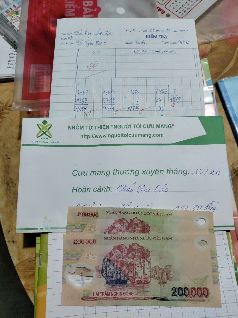LNLB cập nhật một số hình ảnh trao CMTX tháng 11/2024 đến cháu Gia Bảo, qua thăm hỏi được biết cháu đã rất cố gắng trong học tập mặc dù không có ai kèm cặp cho cháu. Cảm ơn bác Ben và bác Mộc di đã đồng hành cùng cháu trong suốt thời gian qua. Do điều kiện nên bác Mộc di ngừng ủng hộ cháu từ tháng 12/24. Qua đây, LNLB đề xuất xuất quỹ NTCM 200.000 cho tháng 12 để cháu được nhận đủ 400.000₫