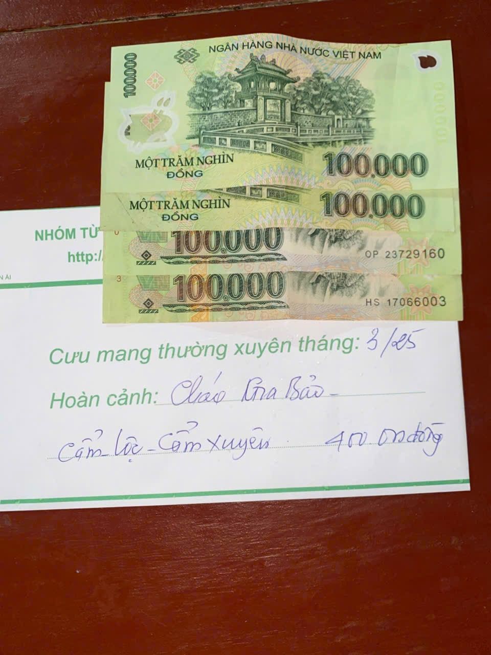 Do điều kiện nên bác Mộc di ngừng ủng hộ cháu từ tháng 12/24. Qua đây, LNLB đề xuất xuất quỹ NTCM 200.000 cho tháng 12 để cháu được nhận đủ 400.000₫