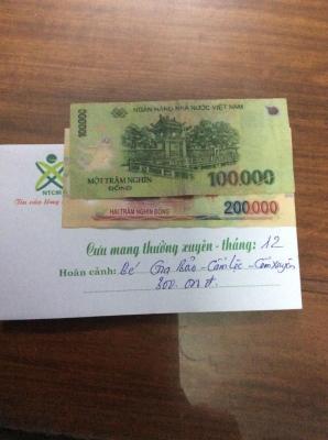 LNLB cập nhật trao CMTX tháng 12/2020 đến cháu Gia Bảo. Và qua đây nhóm hà tĩnh cũng thông báo tới cả nhà bắt đầu từ tháng 1/2021 cháu sẽ được chị Hoàng Phúc ( bạn của HQN) nhận CMTX mỗi tháng 300.000 đồng từ tháng 1 đến tháng 12/2021 ạ. Xin chân thành cảm ơn chị rất nhiều.