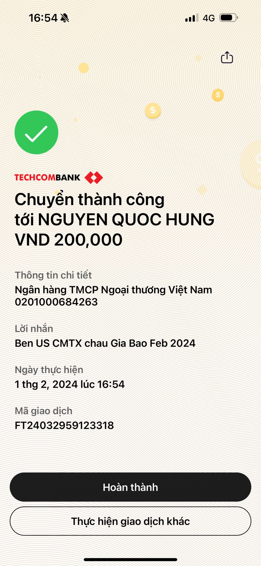 Ben, bạn ThaiDzuy đã chuyển CMTX T2.2024 tới tài khoản bác LNLB. Nhờ bác chuyển giúp ạ!