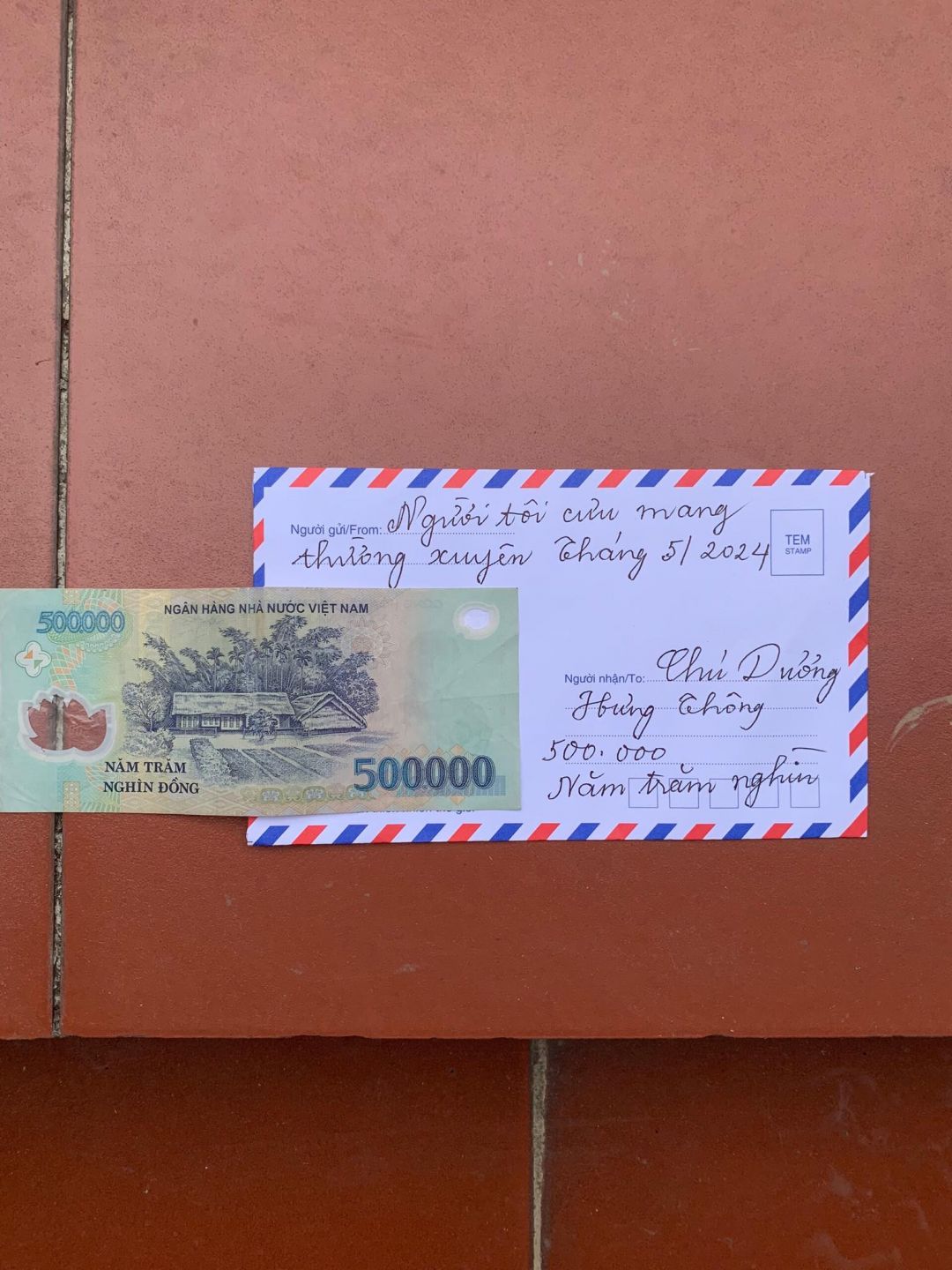 Chào cả nhà, Alexander xin cập nhật hình ảnh trao CMTX hoàn cảnh chú Dương tháng 5/2024 số tiền 500.000 đồng. Cảm ơn cả nhà