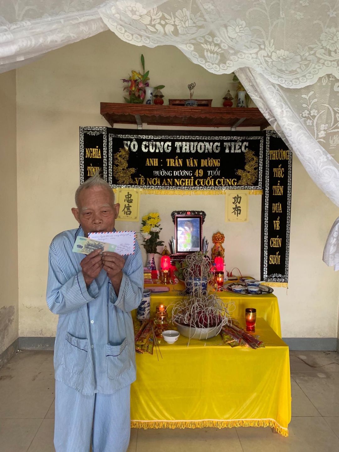 Chào cả nhà, con rất buồn khi phải thông báo tới cả nhà chú Dương đã bị ngã rồi mất không ai biết vì chú bệnh sẵn rồi. Năm ngoái thì bà mất, năm nay chú mất còn mình ông nữa, thương lắm ạ. Khi được biết chú mất nên đã qua thắp hương cho chú và trao CMTX tháng 6 luôn ạ. Tụi con đã trao xong số tiền anh @toan.nguyenk  đã cưu mang giúp đỡ chú trong thời gian qua. Giờ còn mỗi ông cũng tội lắm nên con mong cả nhà tiếp tục cưu mang giúp đỡ hoàn cảnh của ông những tháng tiếp theo ạ. Cảm ơn cả nhà