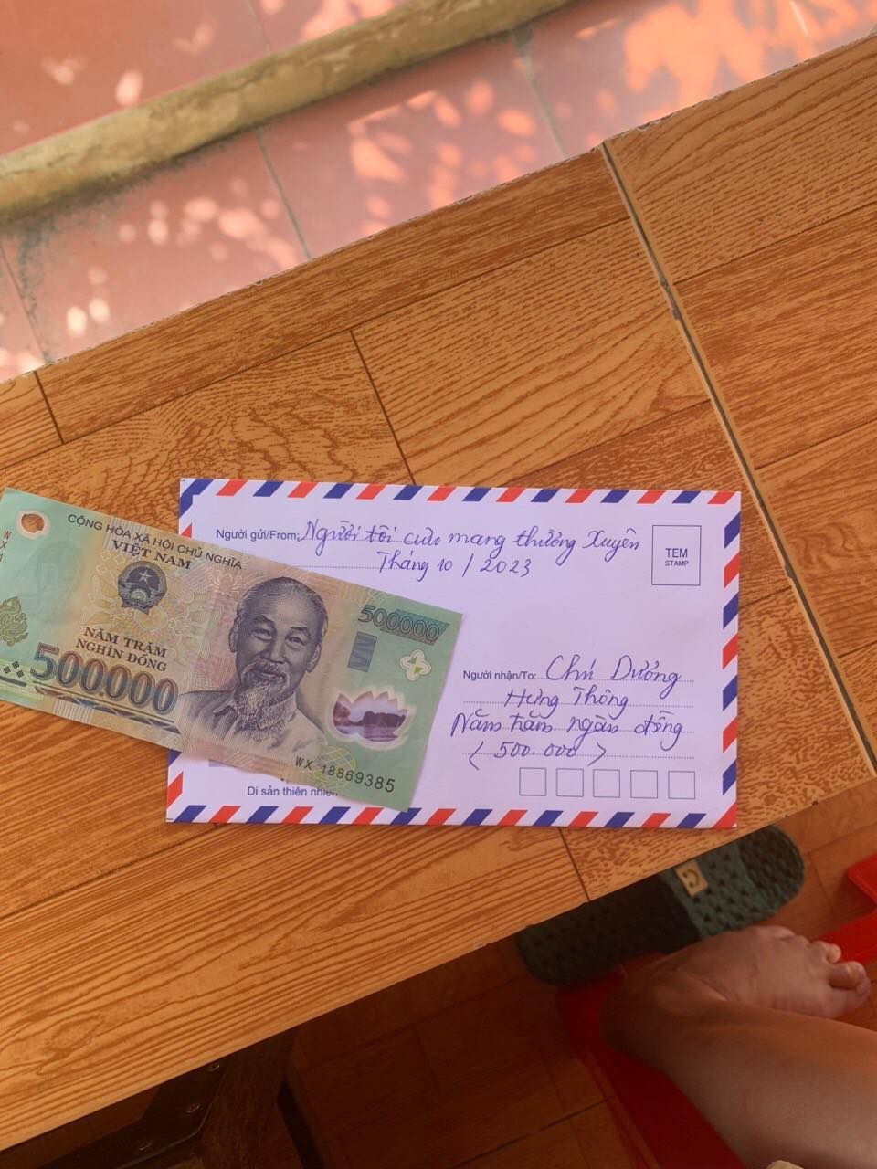 Chào cả nhà, con xin cập nhật hình ảnh trao CMTX hoàn cảnh chú Dương tháng 10/2023 số tiền 500.000 đồng. Cảm ơn cả nhà