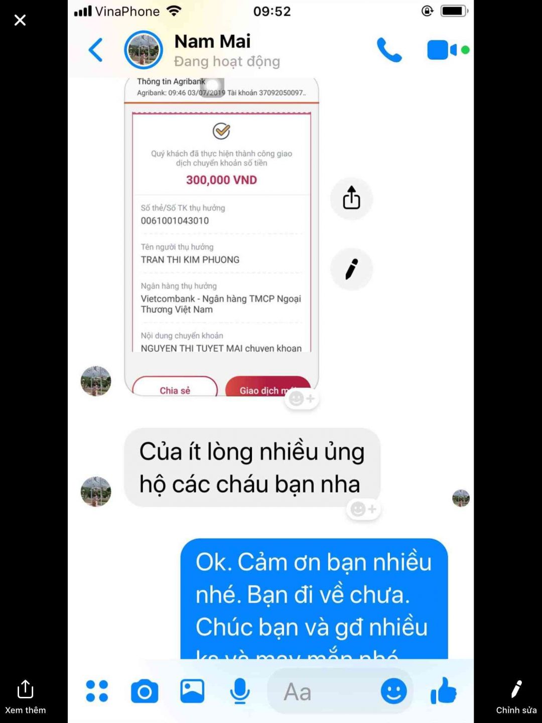 Fb Nam Mai ( Nguyễn Thị Tuyểt Mai) ủng hộ chương trình 300.000₫