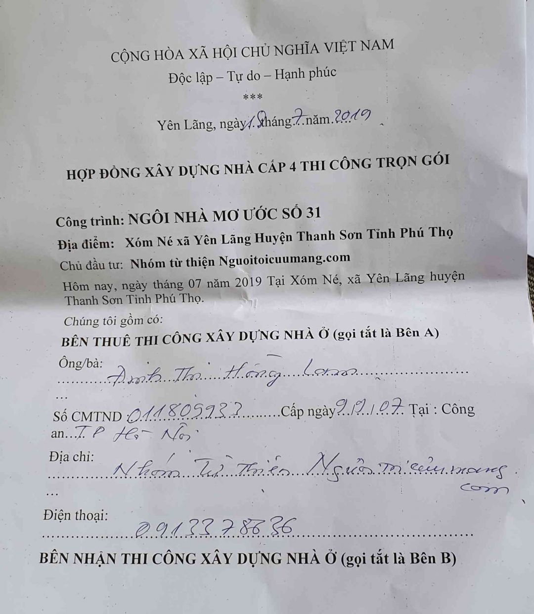 Hôm nay NNMU31 đã chính thức khởi công với sự hỗ trợ của chi Đoàn và hội CTĐ xã Yên Lãng. Đại diện Tổng công ty quản lý bay cũng đến và tặng quà cho gia đình Thỏa. Số cửa của Minh Uyen Nguyen Thuy và bạn của Phạm Lê Di cũng được chuyển đến trong ngày hôm nay. Mọi việc tháo dỡ đều được khẩn trương gấp rút tiến hành. Hy vọng sau 15 ngày nữa mẹ Thỏa sẽ được sống trong ngôi nhà khang trang hơn.Hiện quĩ đã nhận được sự ủng hộ của các bạn.