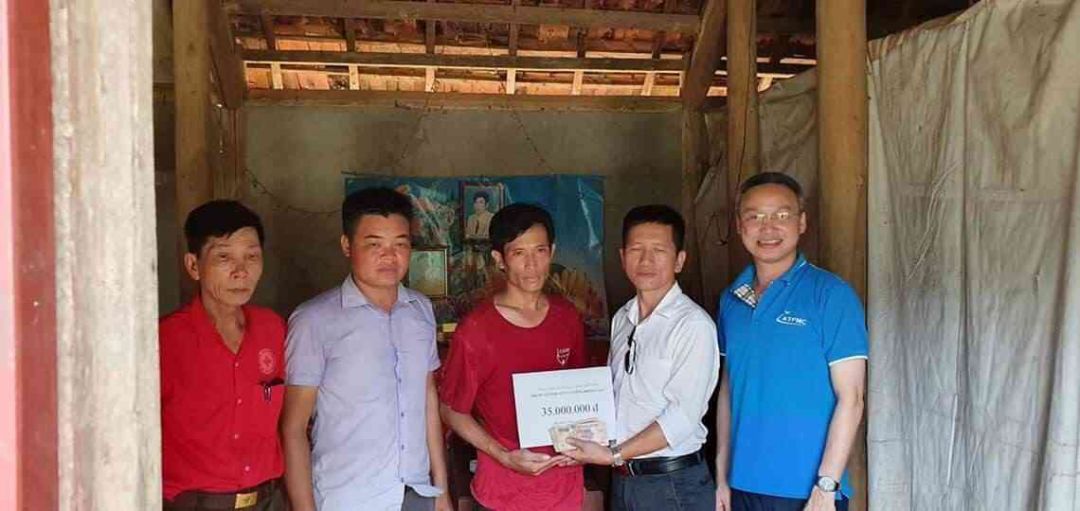 Riêng cty quản lý lưu không đã giúp đỡ 35 triệu cho đợt tạm ứng đầu tiên là 35 triệu đồng. Số tiền này đã được trao cho Tuấn Anh bí thư chi đoàn xã, trước sự chứng kiến của gia đình Thỏa và các đại diện của xã.