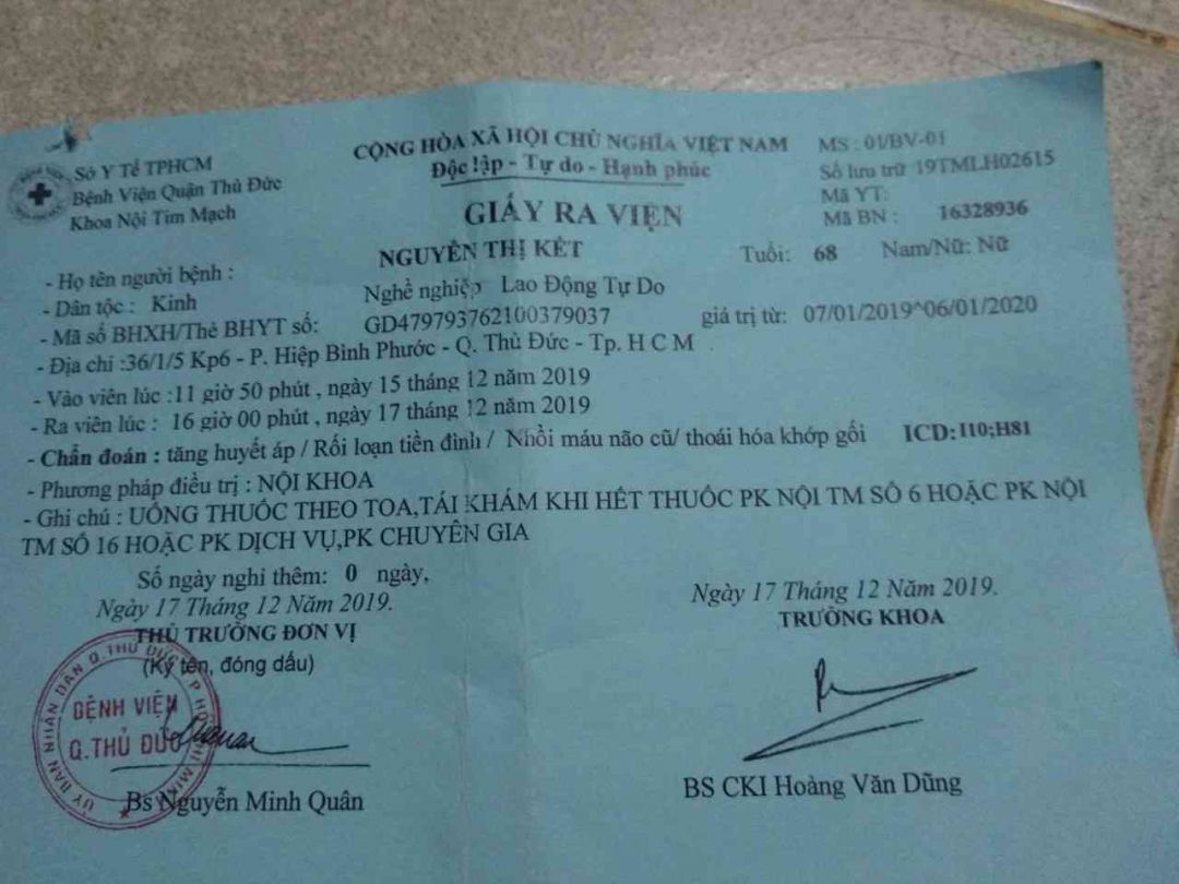 23/10/2019 lúc 22h bà tư tăng huyết áp phải nhập viện . Hiện tại sức khỏe của Ông bà đều ổn .