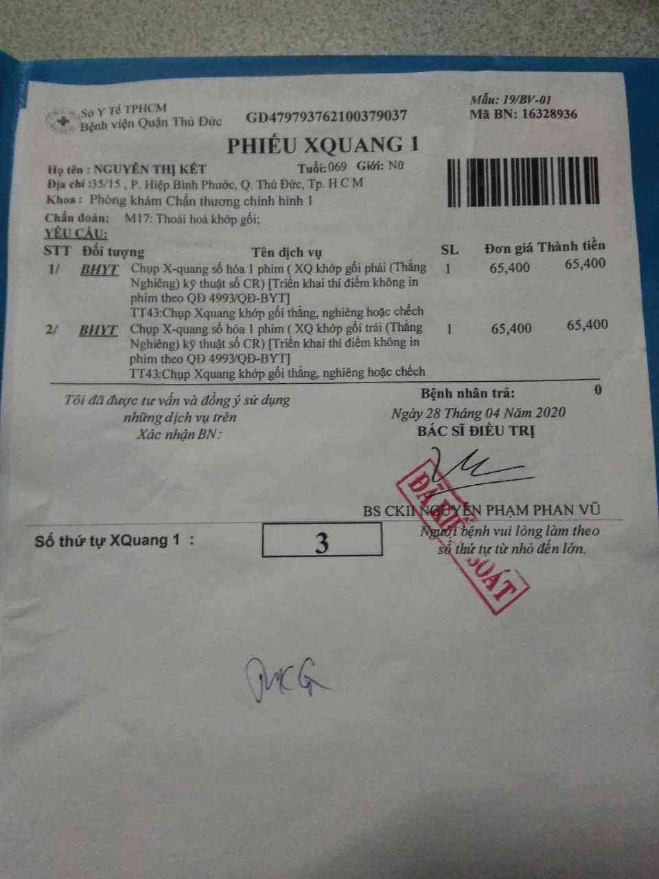 Hôm nay TQH có đến thăm gia đình Ông Bà Tư . Mấy nay Bà Tư bị bệnh khớp  , phải vào bệnh viện khám và chụp Xquang  .