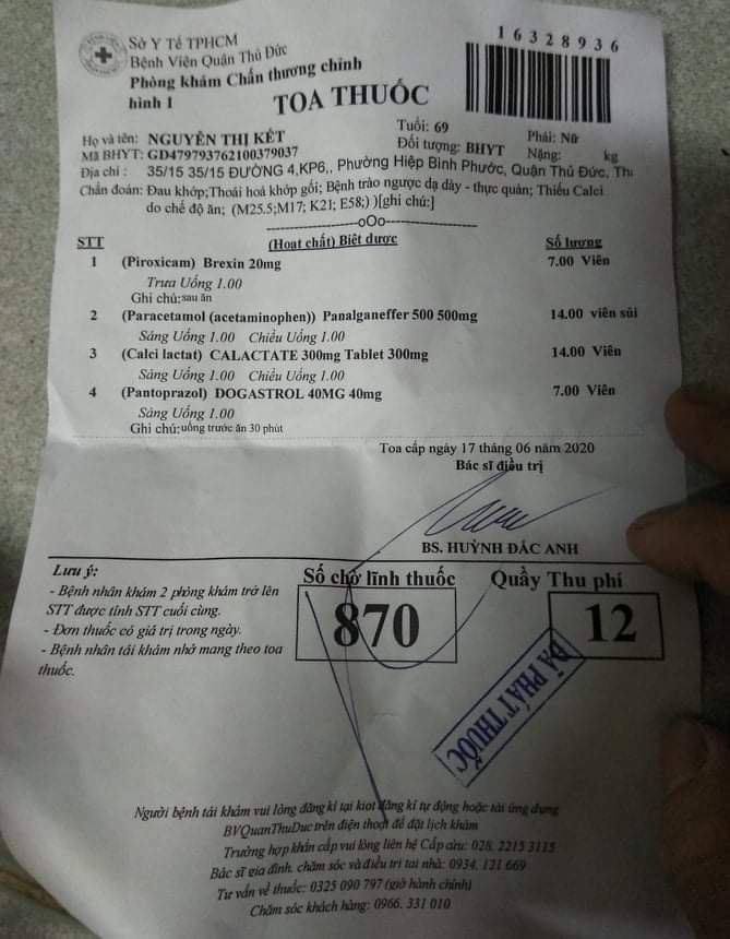 Mấy nay Bà Tư bệnh nên Ông chưa đi bán lại được . Bà mới đi khám bệnh ở BV Chấn thương chỉnh hình Quân 5 về .
