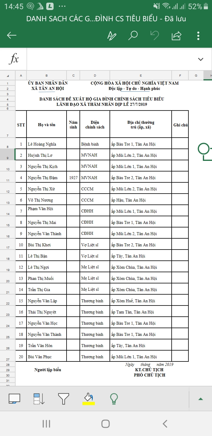 Danh sách gia đình chính sách của xã