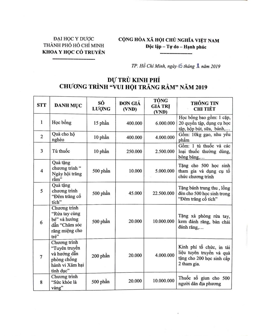 Dưới đây là hình ảnh của kế hoạch chương trình và dự trù kinh phí. Vì một số lý do nội bộ về tổ chức của lãnh đạo khoa Y học Cổ truyền nên kế hoạch chương trình xuất hiện khá trễ và làm ảnh hướng đến khung thời gian chuẩn bị chương trình.