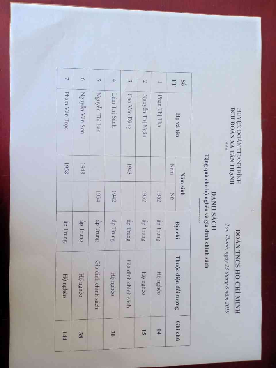 Ủy ban nhân dân xã vừa có văn bản gửi về cho chương trình về danh sách hộ dân chính thức được nhận phần quà hộ gia đình