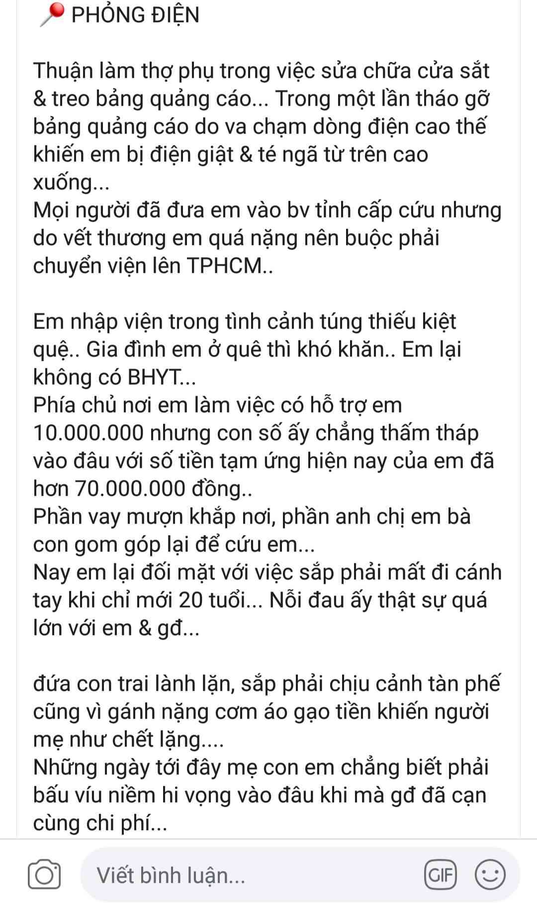 Mọi người đã đưa em vào bv tỉnh cấp cứu nhưng do vết thương em quá nặng nên buộc phải chuyển viện lên TPHCM..