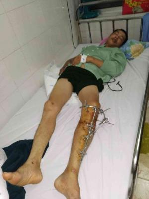 Anh Trường được đưa vào bệnh viện trong tình trạng rất thương tâm, sau khi cấp cứu và chữa trị khoảng 100 triệu thì hiện giờ anh ở trong tình trạng xuất huyết máu não, một chât và 1 tay bị dập nát, trí óc lúc tỉnh, lúc mơ.