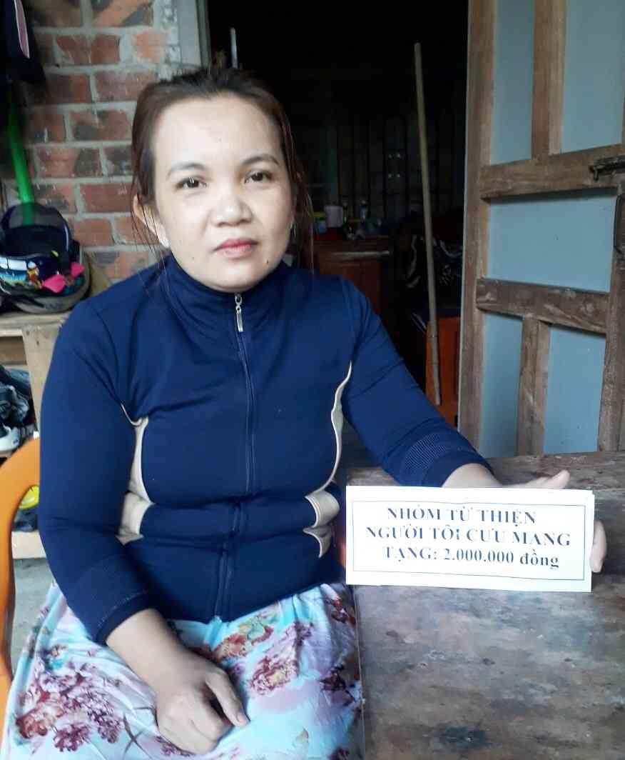 Vừa qua, chị bị tai nạn giao thông. Gãy chân nằm chỗ, chị ở cùng mẹ già, nhưng mẹ chị đi bán vé số ở Đà Nẳng nên chị đẩy xe đi lại lo toan cho con ăn uống. Hiện tại, kinh tế đã cạn kiệt. Mẹ con chị ăn mì tôm qua ngày gần tháng nay. Chị đã cầm cả giấy tờ xe trang trải .