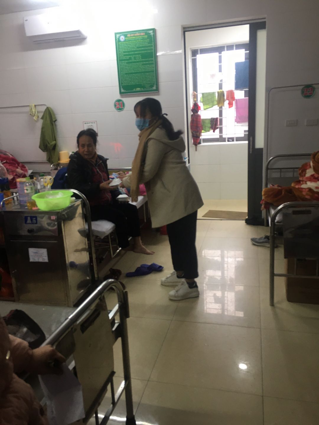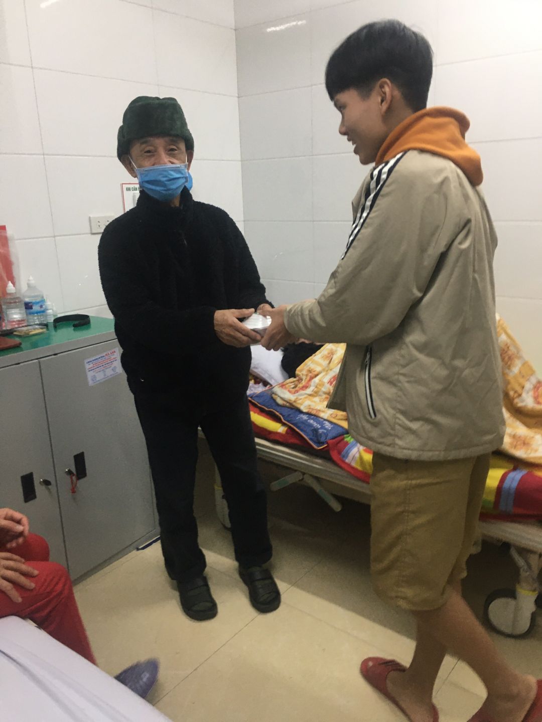 Do thời tiết hà tĩnh lạnh nên các bạn TNV đã mang đến từng phòng bệnh trao cho bệnh nhận