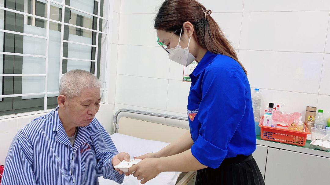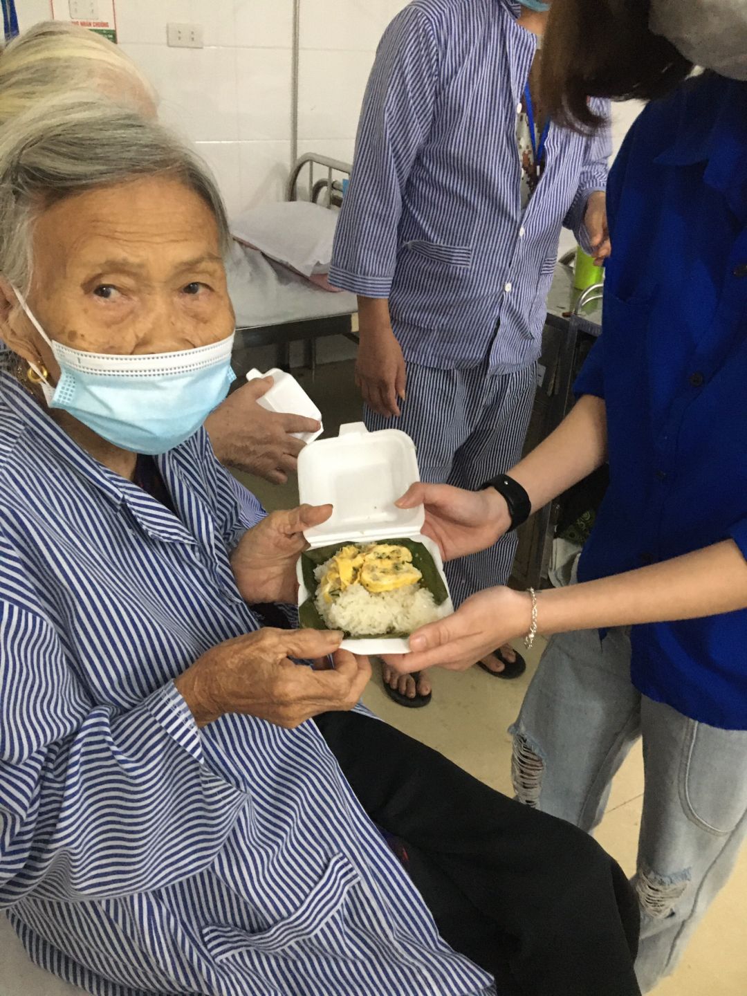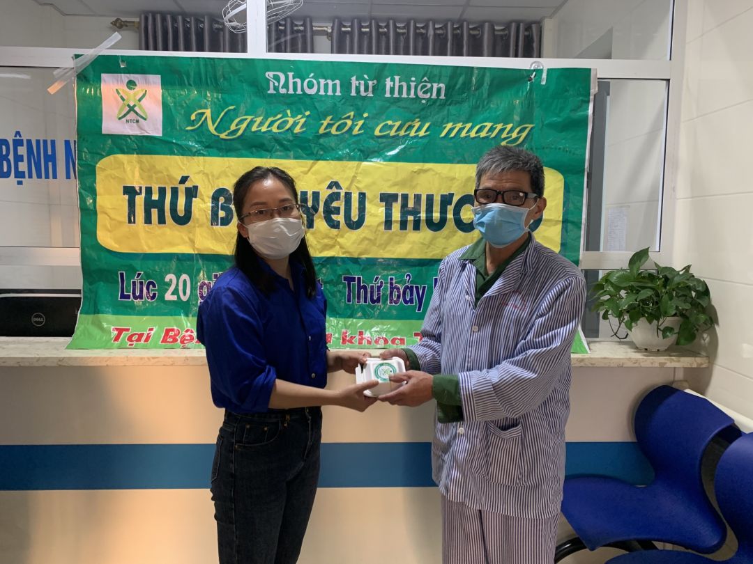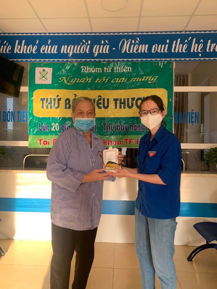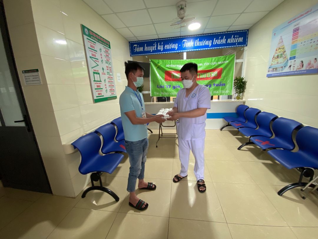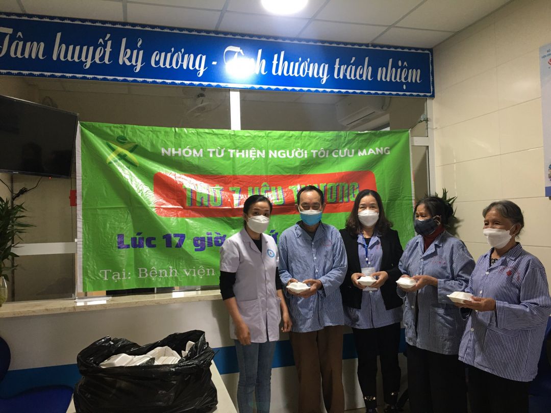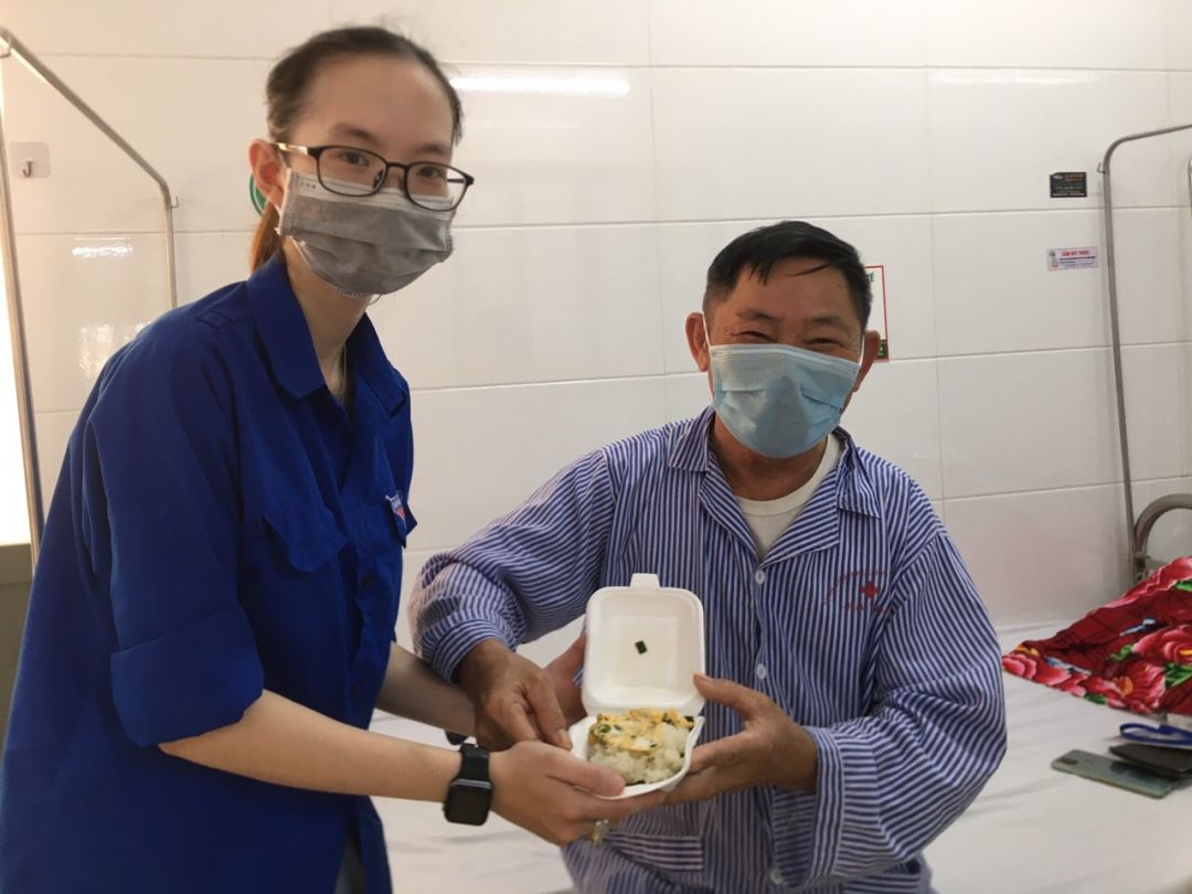 Nhưng cũng nhờ có sự hỗ trợ từ các anh chị đoàn thanh niên, các chị điều dưỡng viên hộ trợ nhận và phát cho bệnh nhân nên nhóm cũng đỡ phàn nào ngại khi phải tiếp xúc với bệnh nhân