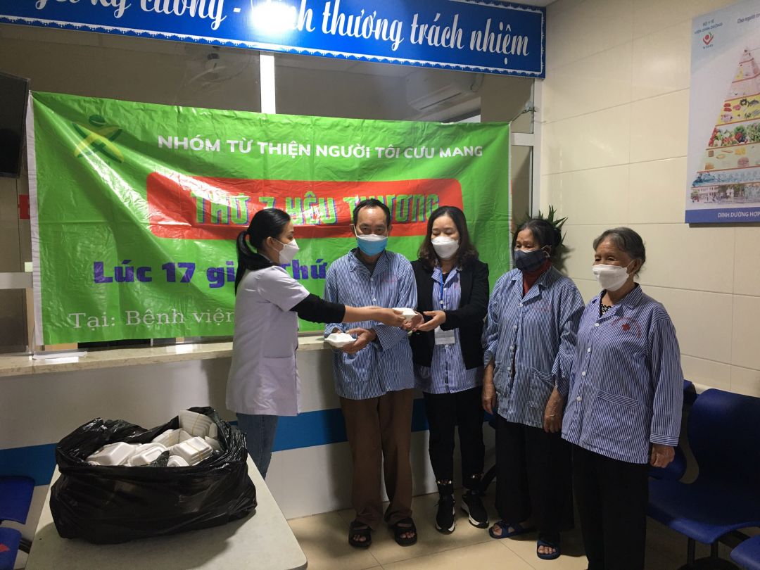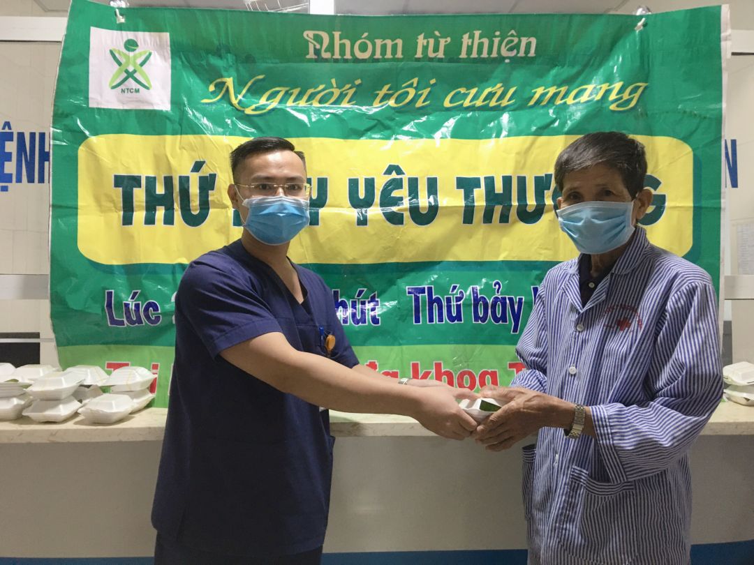 Nhưng cũng nhờ có sự hỗ trợ từ các anh chị đoàn thanh niên, các chị điều dưỡng viên hộ trợ nhận và phát cho bệnh nhân nên nhóm cũng đỡ phàn nào ngại khi phải tiếp xúc với bệnh nhân