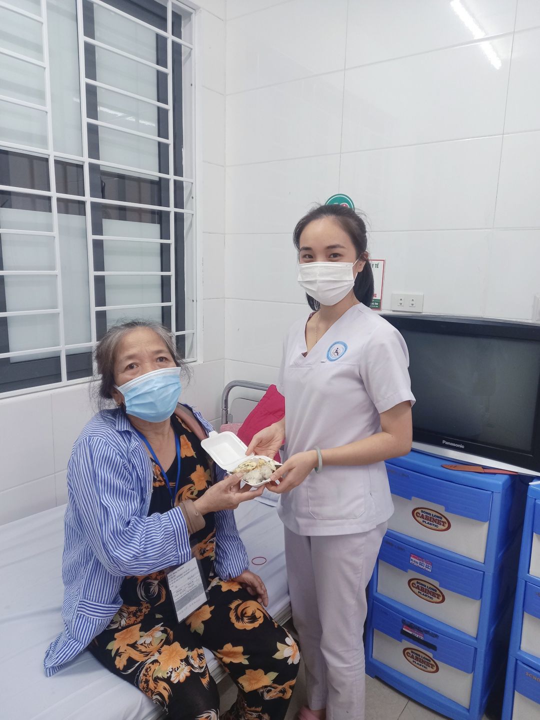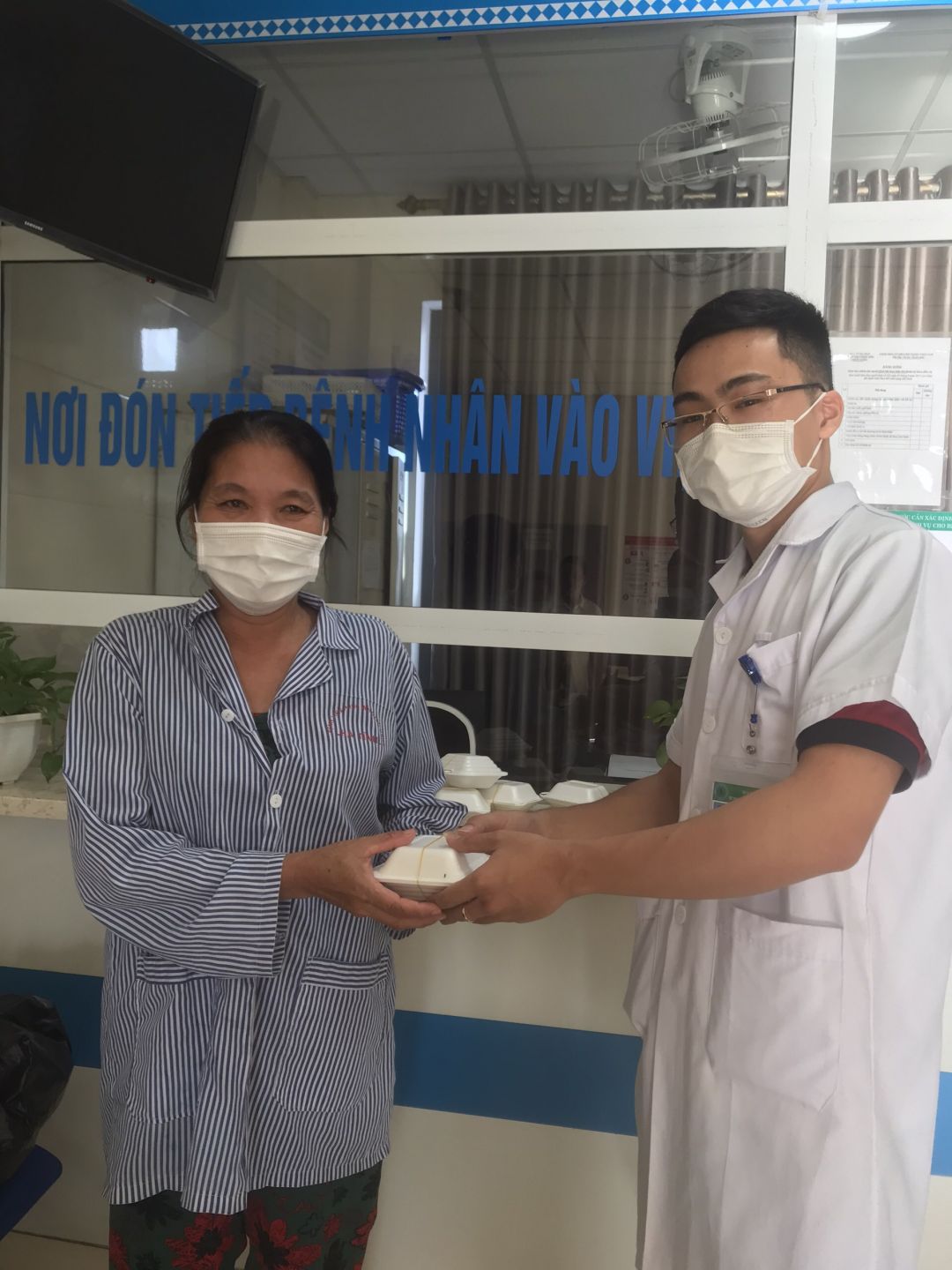 280 suất xôi được nhóm HT cùng đoàn thanh niên BV phục hồi chức năng trao đến bệnh nhân đang điều trị tại bv