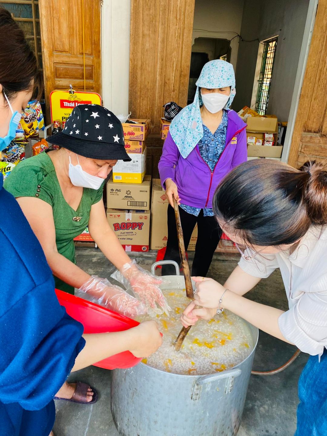 NTCM - Hà Tĩnh đã tổ chức nấu tại nhà Thành viên Nguyễn Quý và phát cháo tại bệnh viện Phục hồi chức năng Hà Tĩnh.