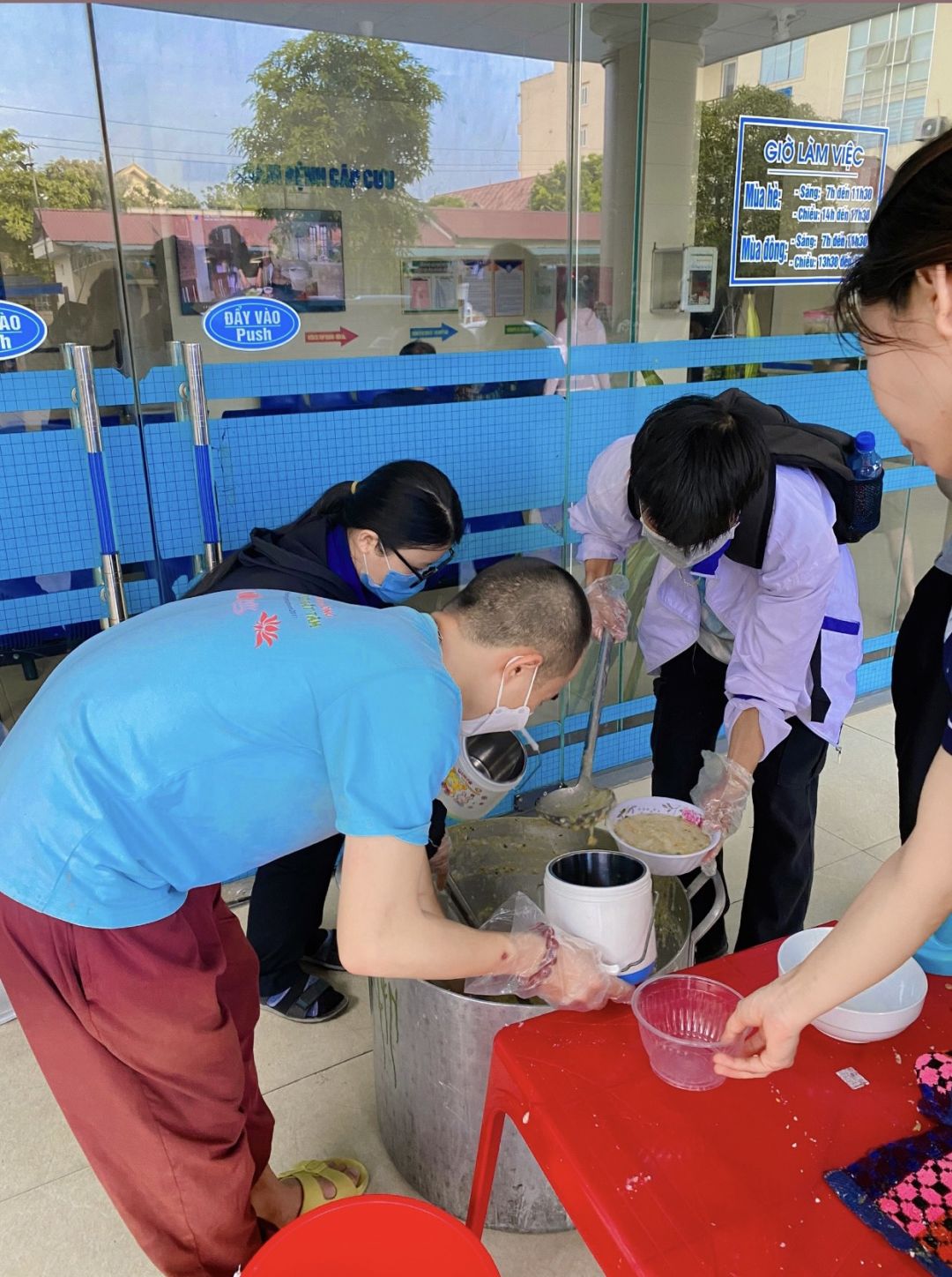 Hôm nay thứ 7, ngày 29/4; ngày đầu của dịp nghỉ lễ, nhóm cập nhật được thông tin từ phía bệnh viện, lượng bệnh nhân về nhà khá nhiều, nên nhóm đã chủ động giảm suất cháo.