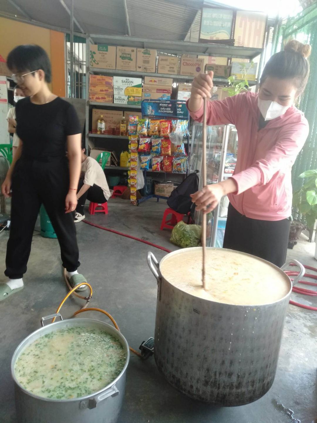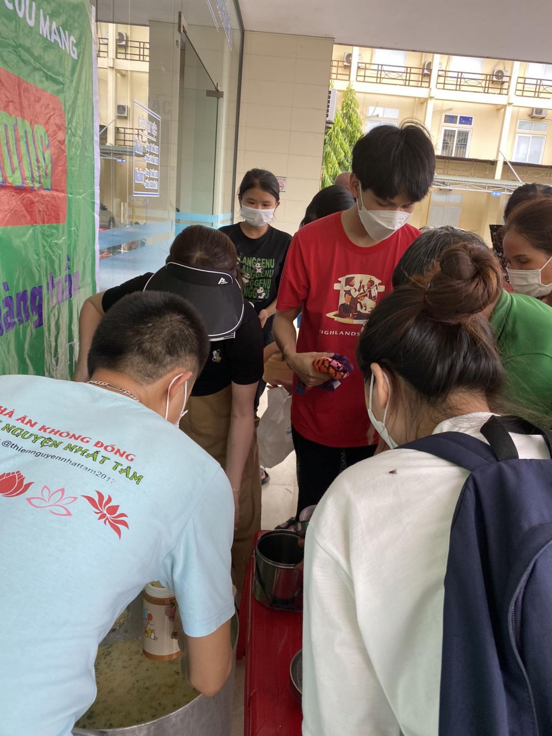 Cảm ơn các bạn TNV đã cùng với nhóm trao yêu thương trao những bát cháo thơm phức tới mọi người