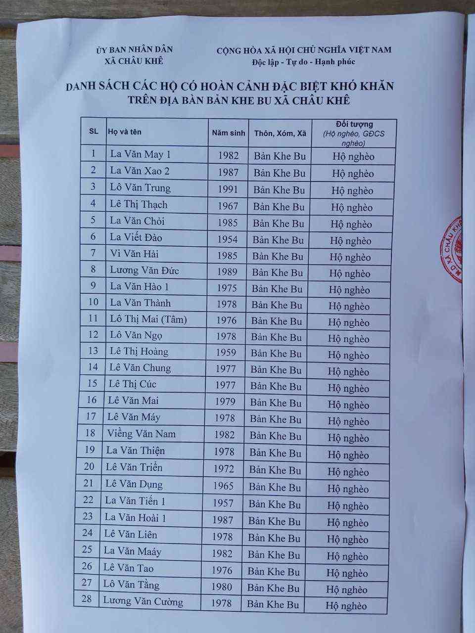 Sau khi làm việc với cán bộ xã tụi con đã lấy được danh sách 100 hộ dân có hoàn cảnh đặc biết khó khăn trên địa bàn. Con xin cập nhật để cả nhà cùng nắm rõ. Tụi con vẫn đang triển khai chương trình. Cảm ơn cả nhà vì đã tạo điều kiện cho TV tại Nghệ An thực hiện chương trình lần này. Tụi con sẽ cố gắng ạ